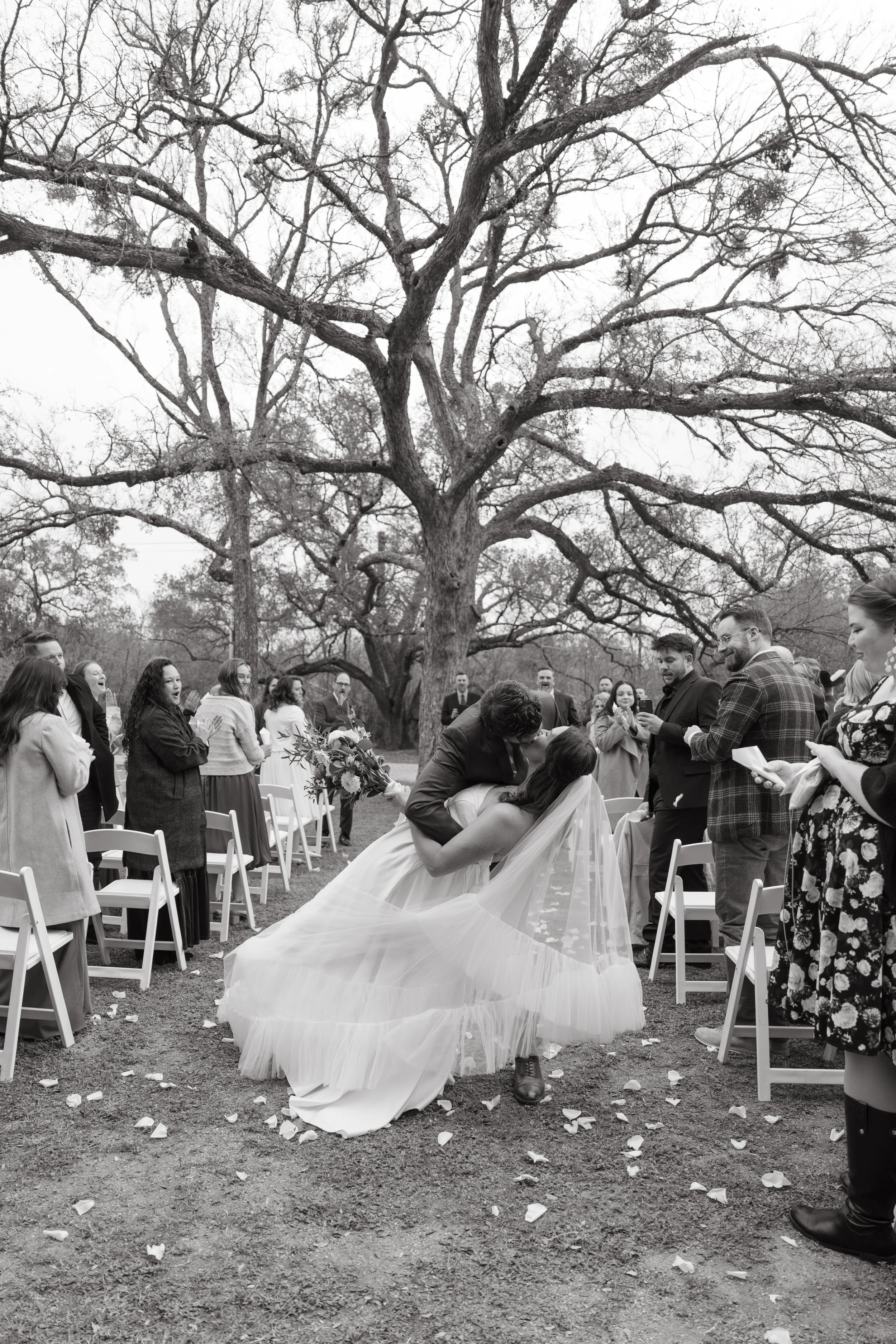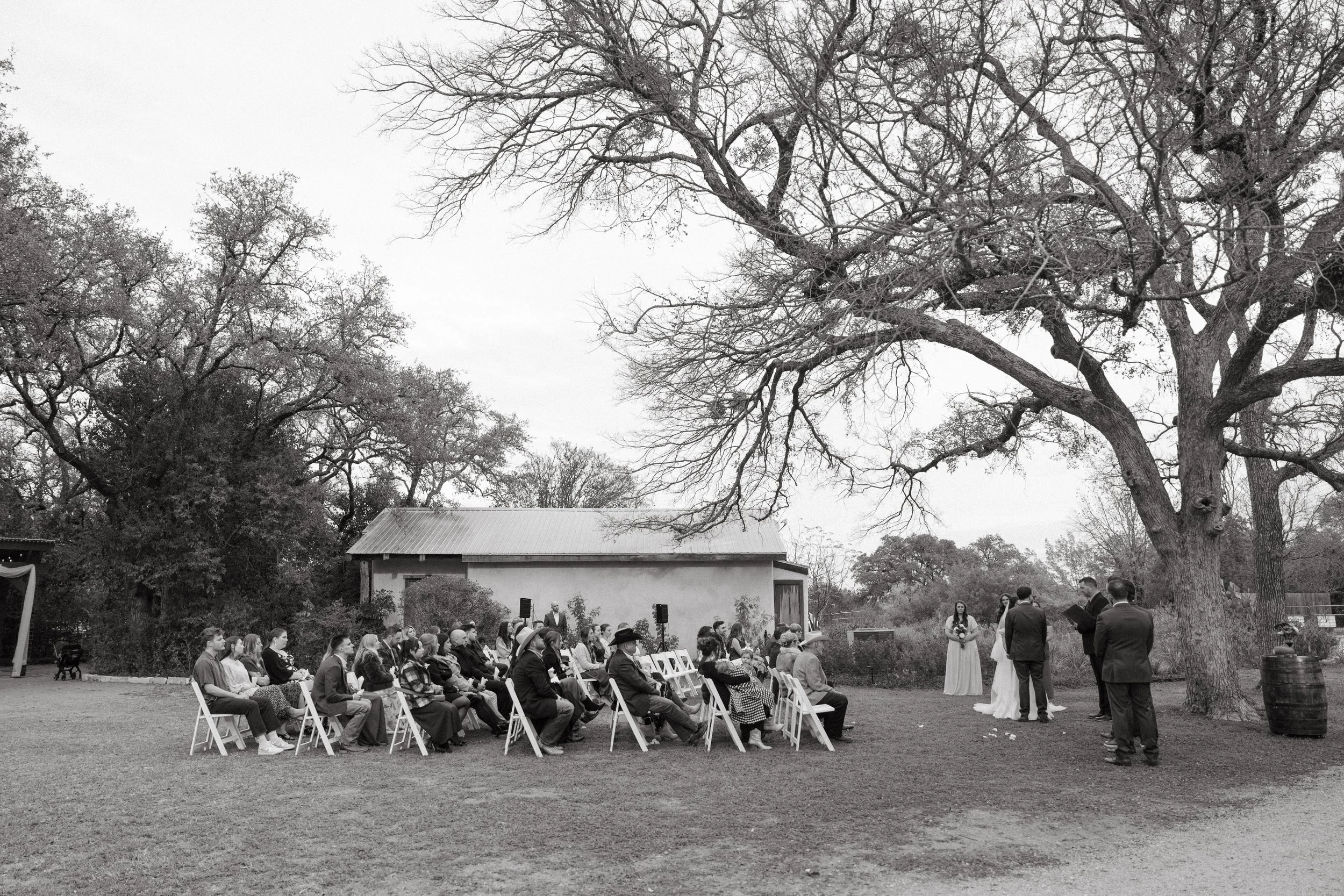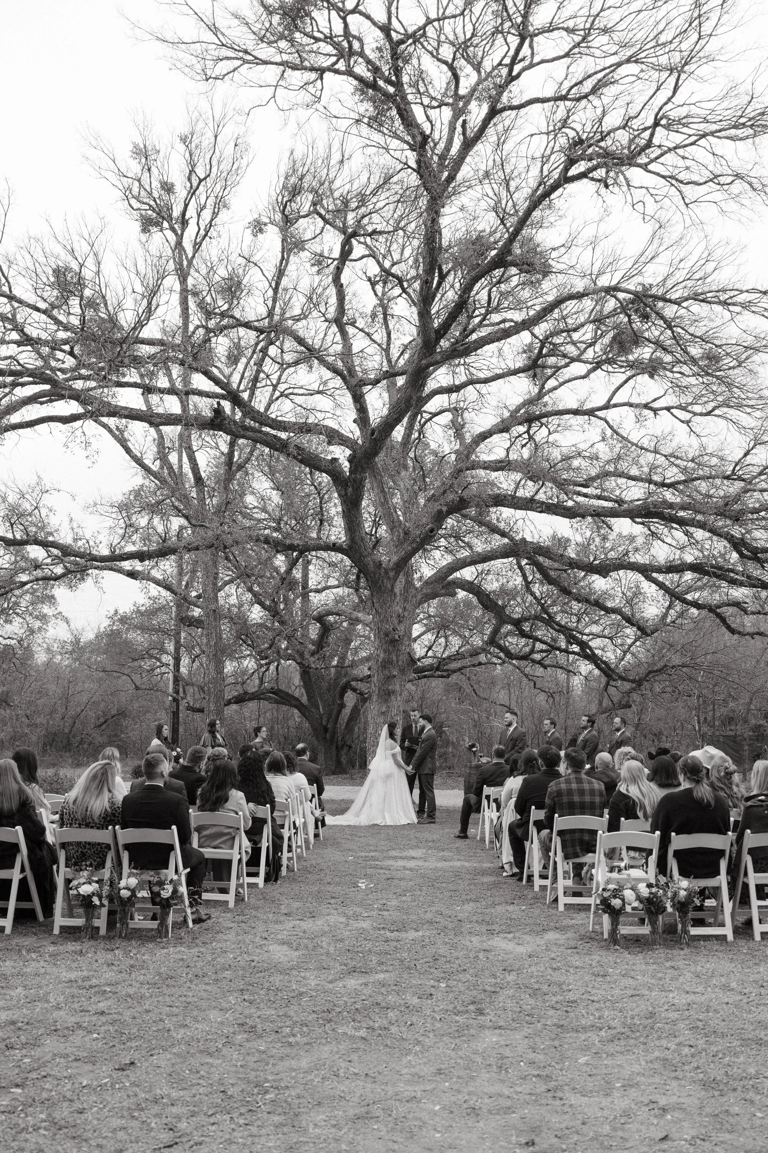 On a beautiful, sunlit December day, Rachael and Logan celebrated their wedding at Hudson Bend Ranch. The day began with portraits in the lush green courtyard and intimate moments in the bridal suite. They exchanged vows beneath the majestic Big Tree, surrounded by loved ones, before making their way to Horseshoe Meadow to dance the night away under a canopy of stars.