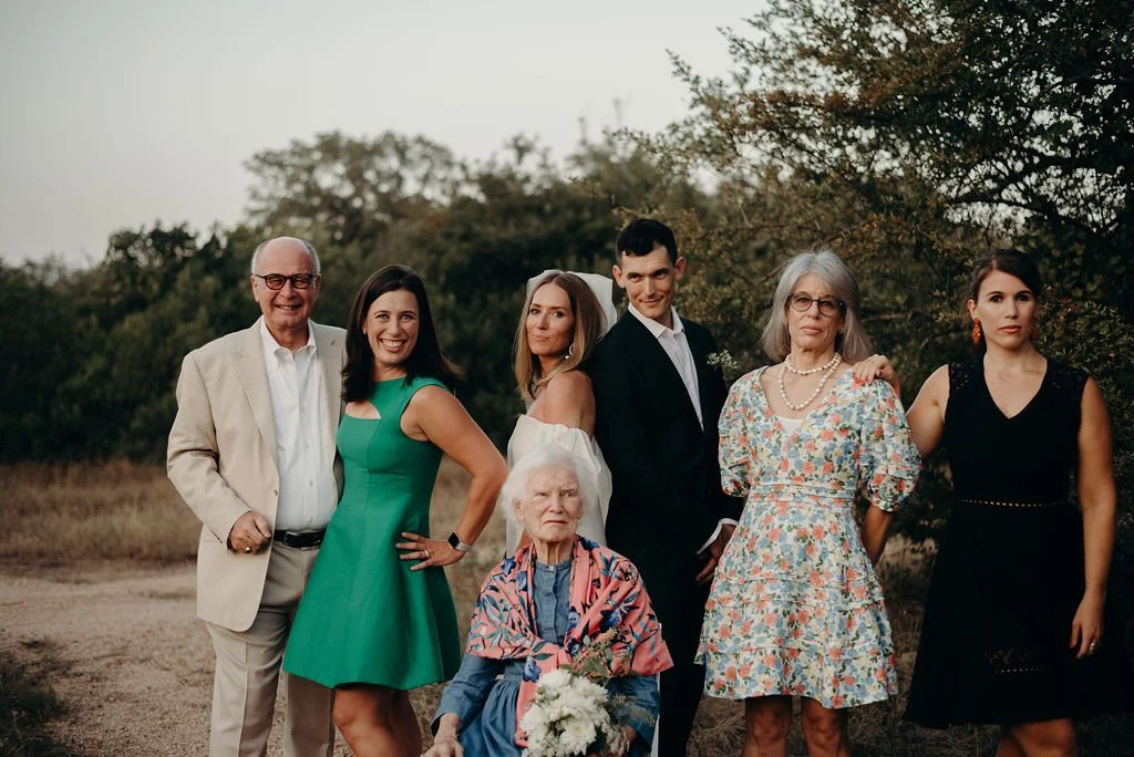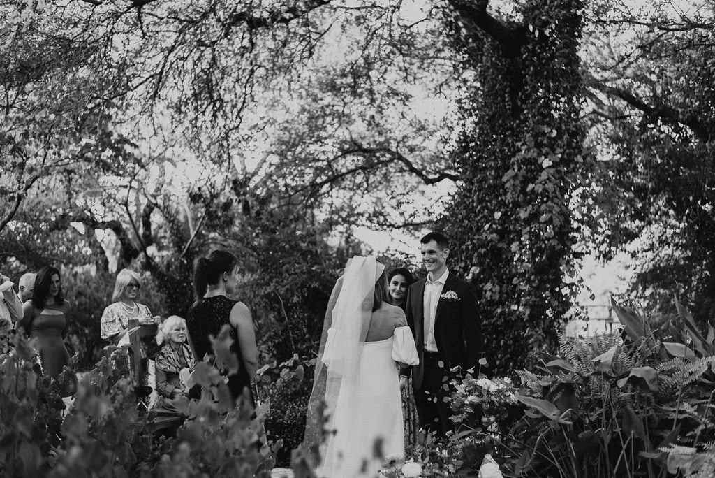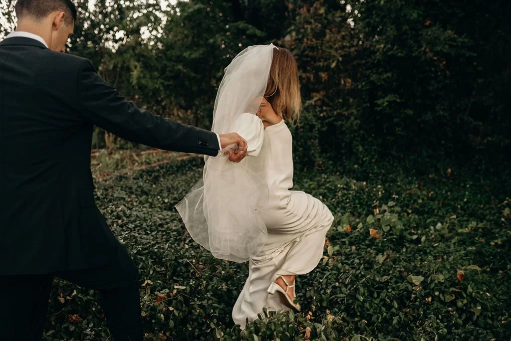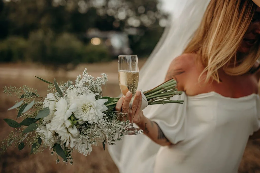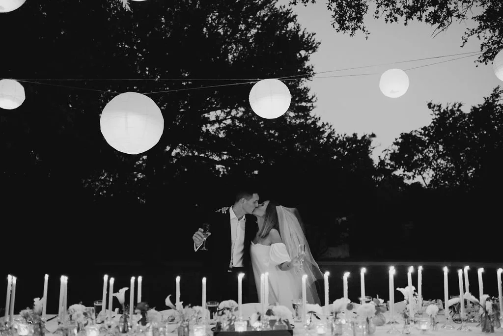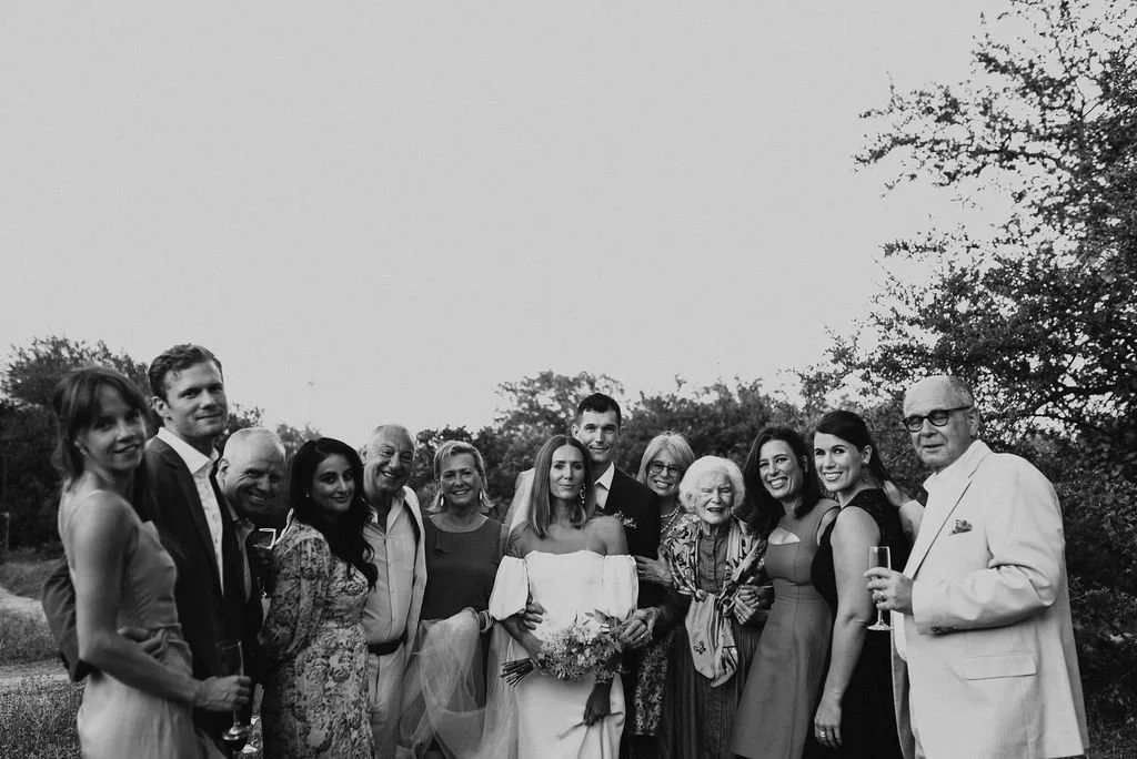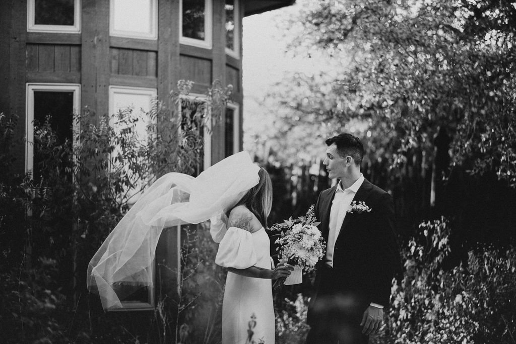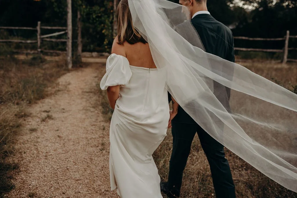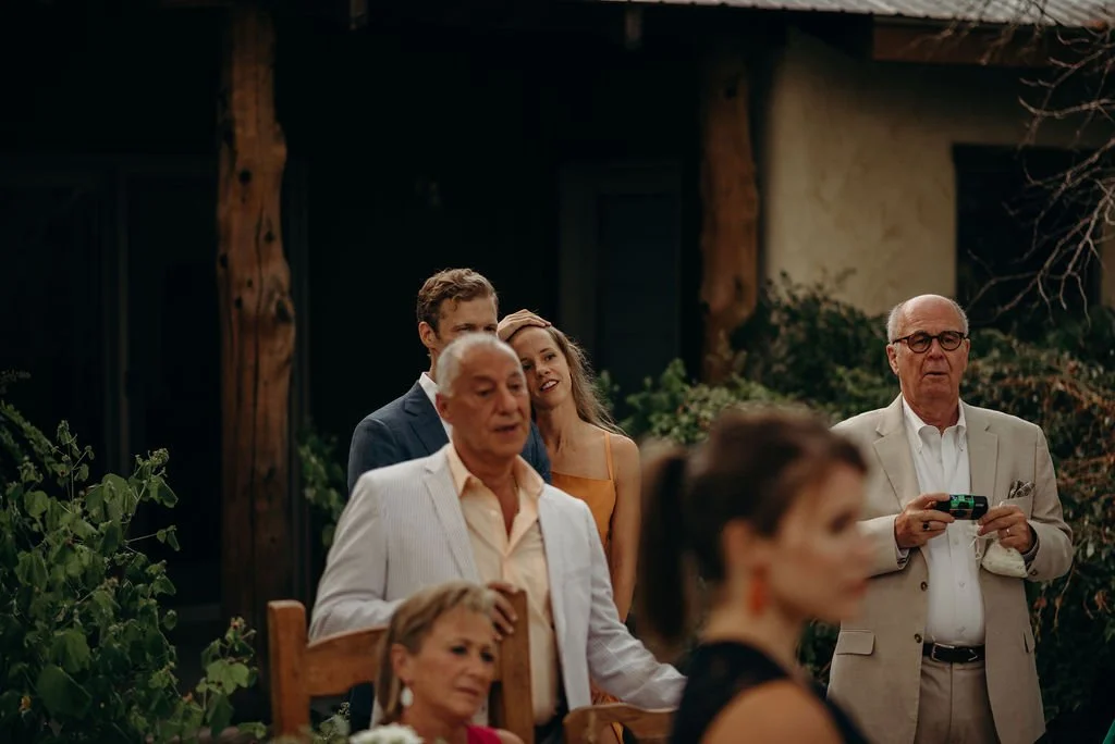 Kathryn and Oliver were married in August 2020 in an intimate outdoor ceremony surrounded by their closest friends and family. They exchanged vows in the Courtyard, embraced by lush greenery and the gentle sound of a bubbling fountain in the background. Following the ceremony, guests gathered for an outdoor catered dinner at the Promenade near the Pergola, where warm string lights created a soft, romantic glow. The couple captured portraits with their families in the surrounding meadows and fields, adding to the natural charm of the day. It was a heartfelt, sweet celebration made even more special with their dog by their side.