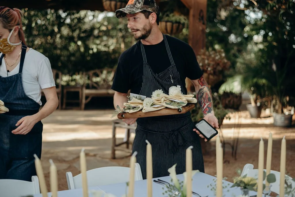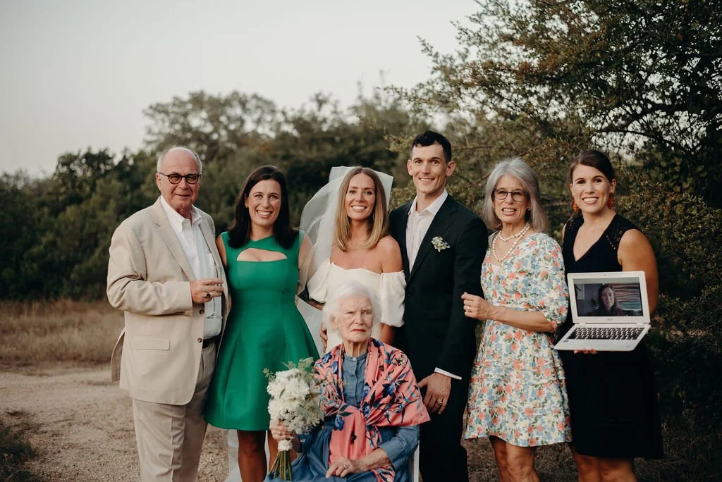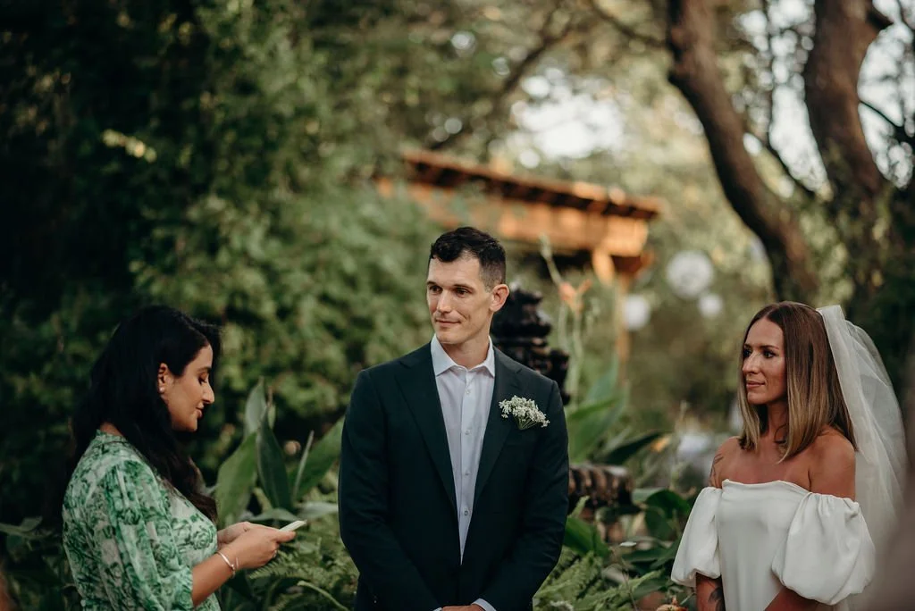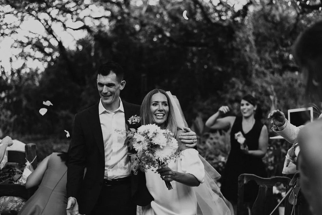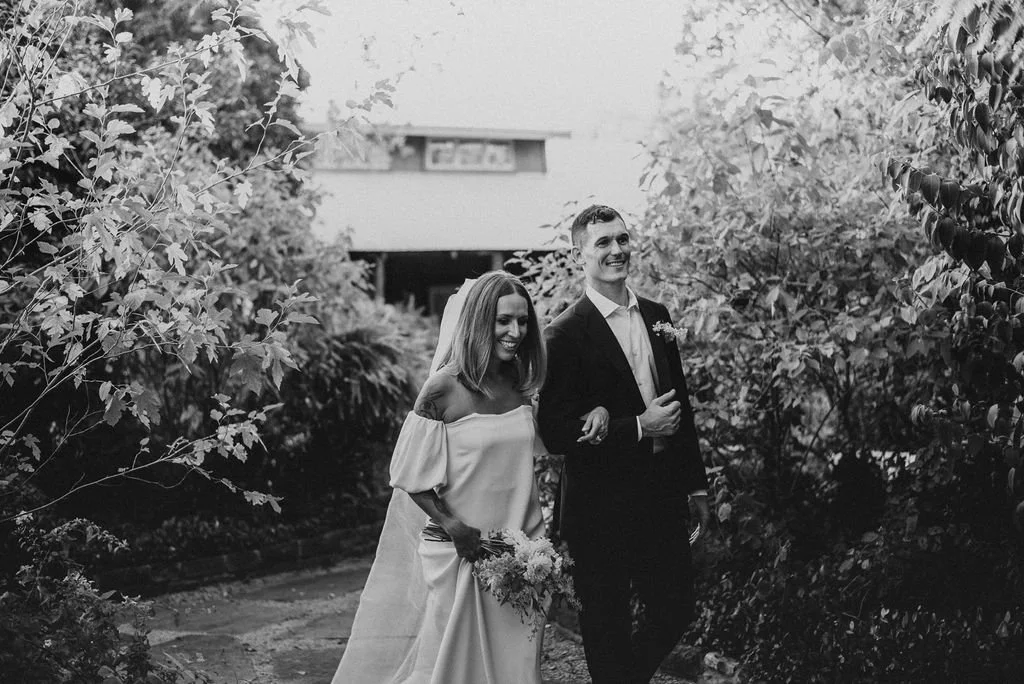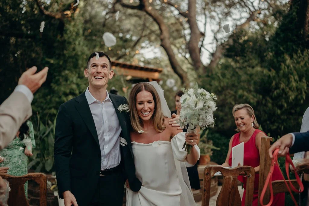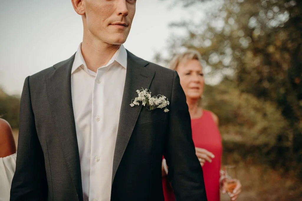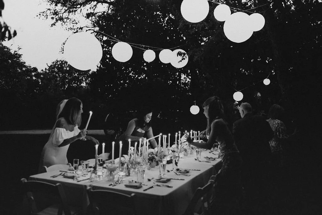 Kathryn and Oliver were married in August 2020 in an intimate outdoor ceremony surrounded by their closest friends and family. They exchanged vows in the Courtyard, embraced by lush greenery and the gentle sound of a bubbling fountain in the background. Following the ceremony, guests gathered for an outdoor catered dinner at the Promenade near the Pergola, where warm string lights created a soft, romantic glow. The couple captured portraits with their families in the surrounding meadows and fields, adding to the natural charm of the day. It was a heartfelt, sweet celebration made even more special with their dog by their side.