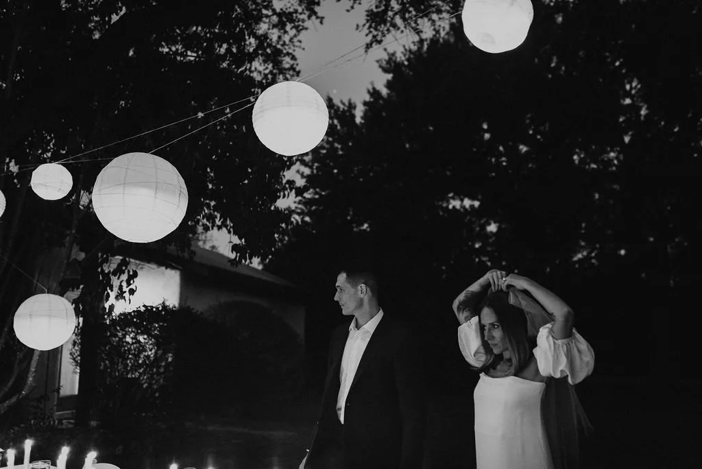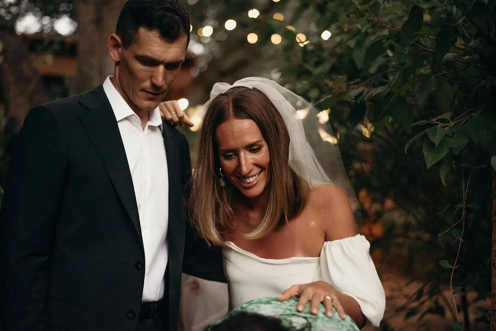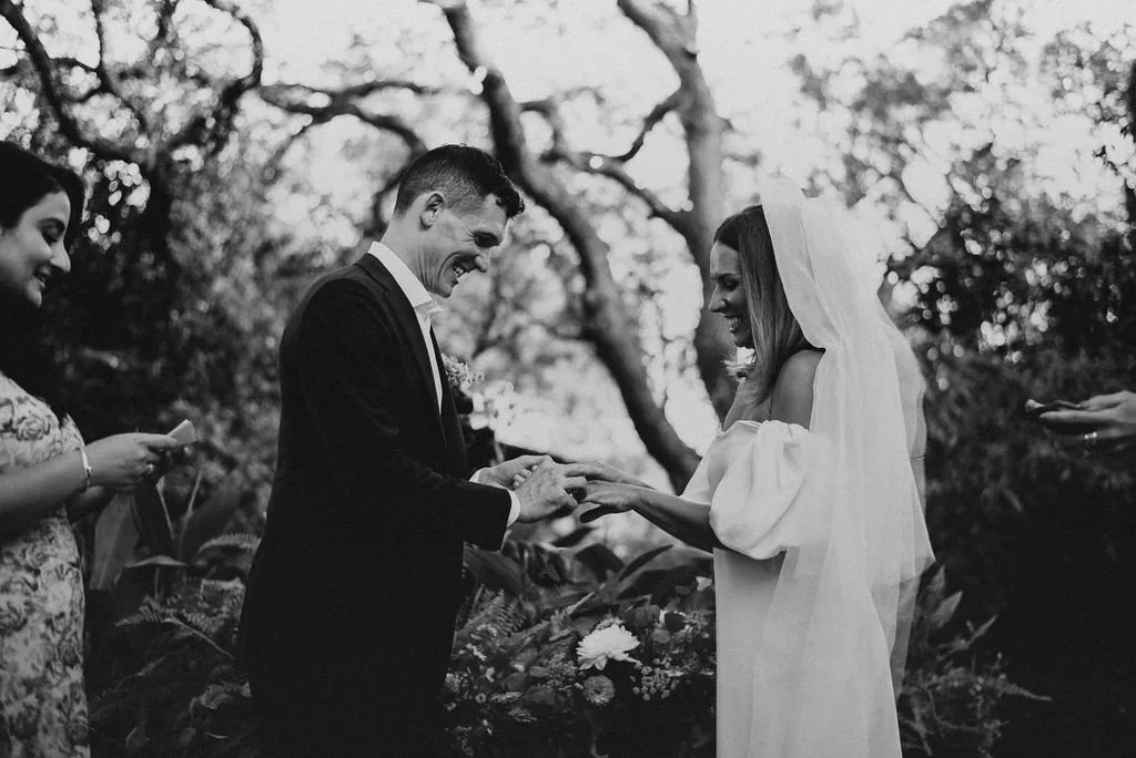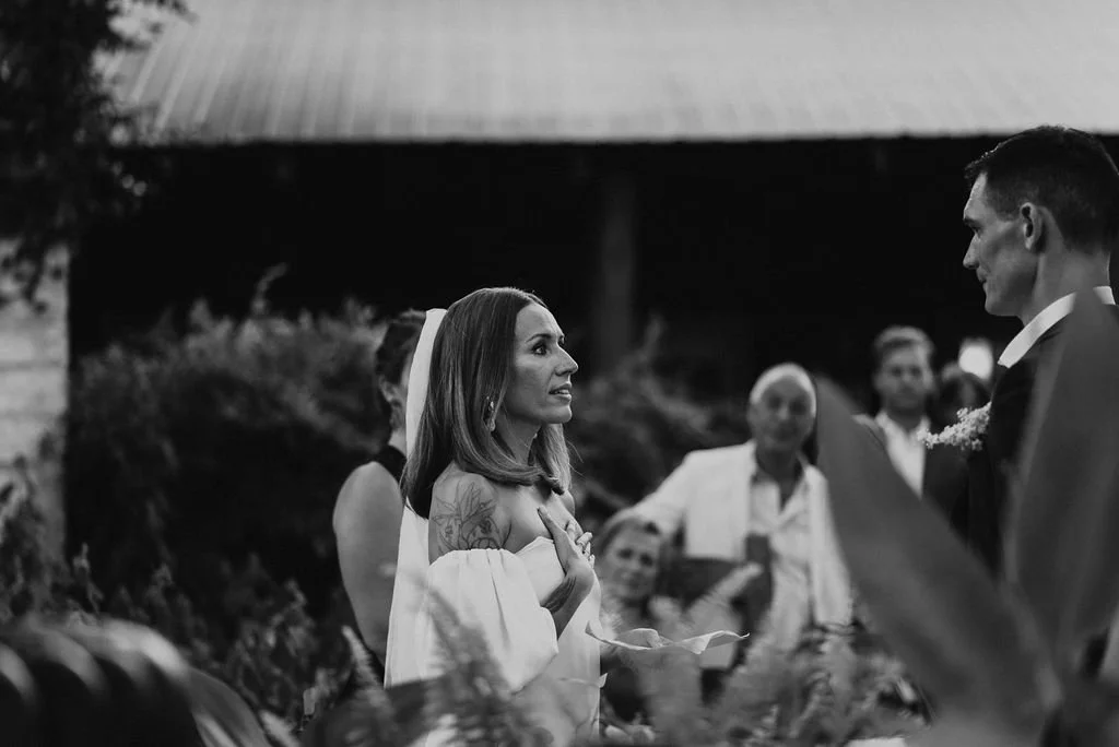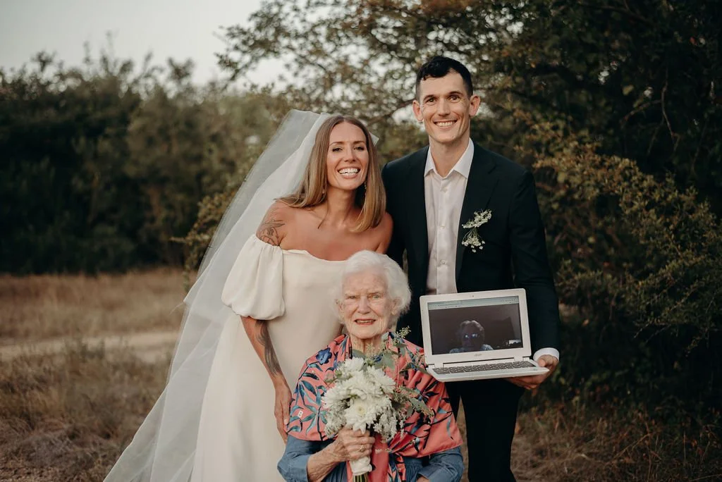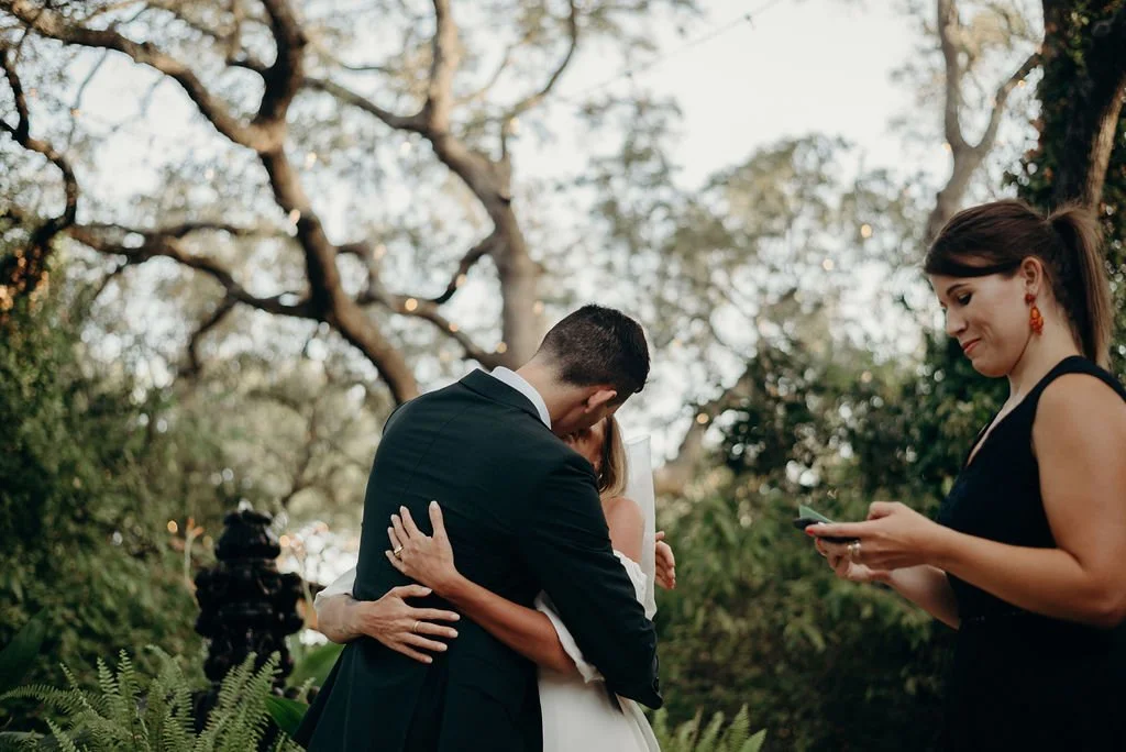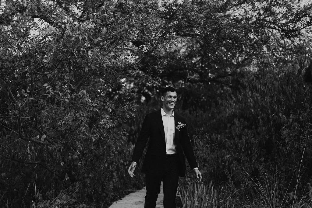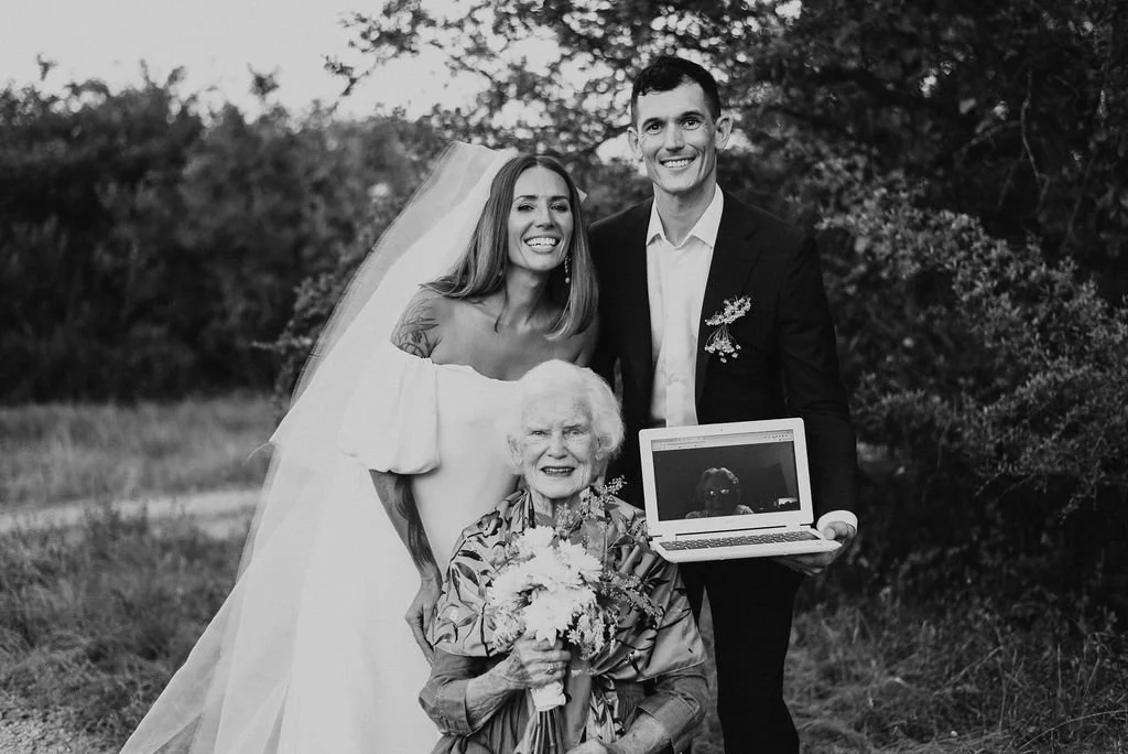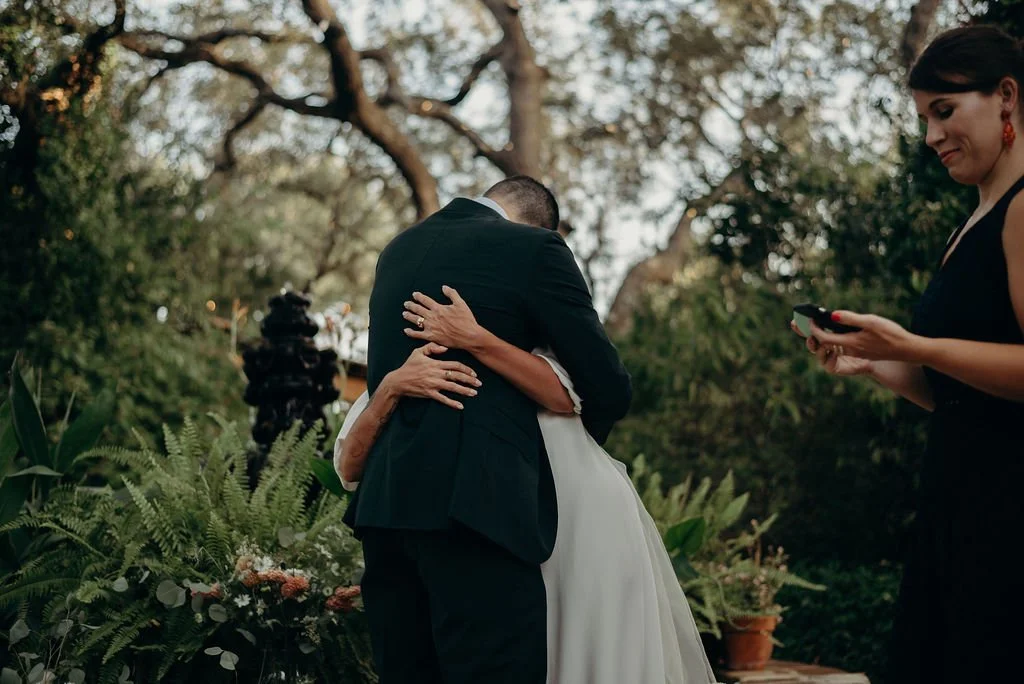 Kathryn and Oliver were married in August 2020 in an intimate outdoor ceremony surrounded by their closest friends and family. They exchanged vows in the Courtyard, embraced by lush greenery and the gentle sound of a bubbling fountain in the background. Following the ceremony, guests gathered for an outdoor catered dinner at the Promenade near the Pergola, where warm string lights created a soft, romantic glow. The couple captured portraits with their families in the surrounding meadows and fields, adding to the natural charm of the day. It was a heartfelt, sweet celebration made even more special with their dog by their side.