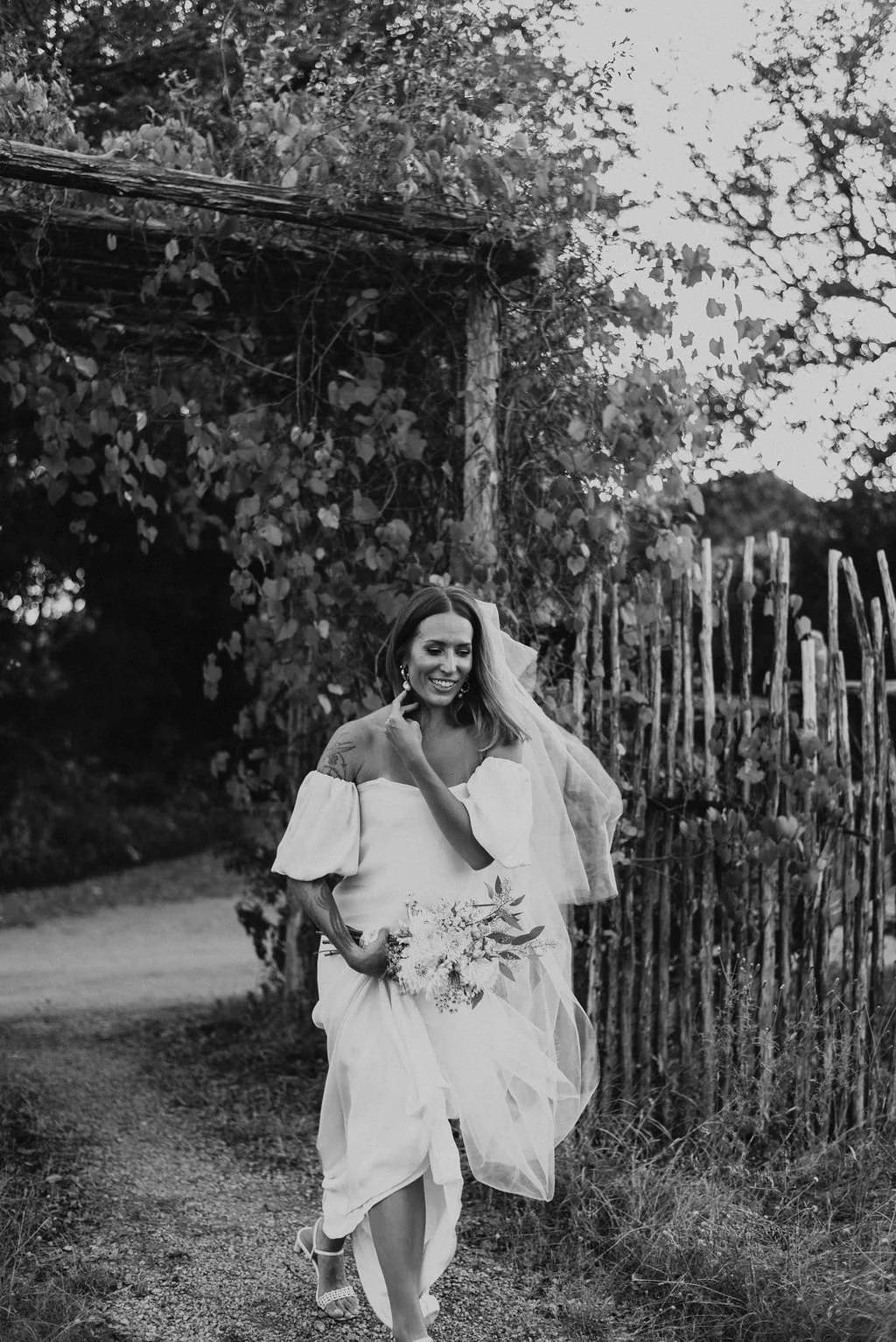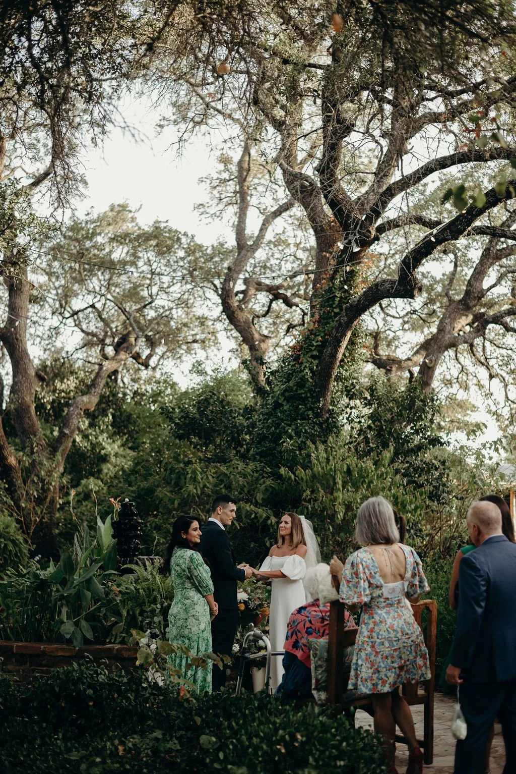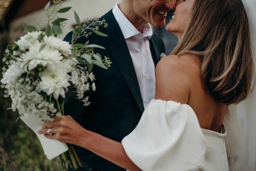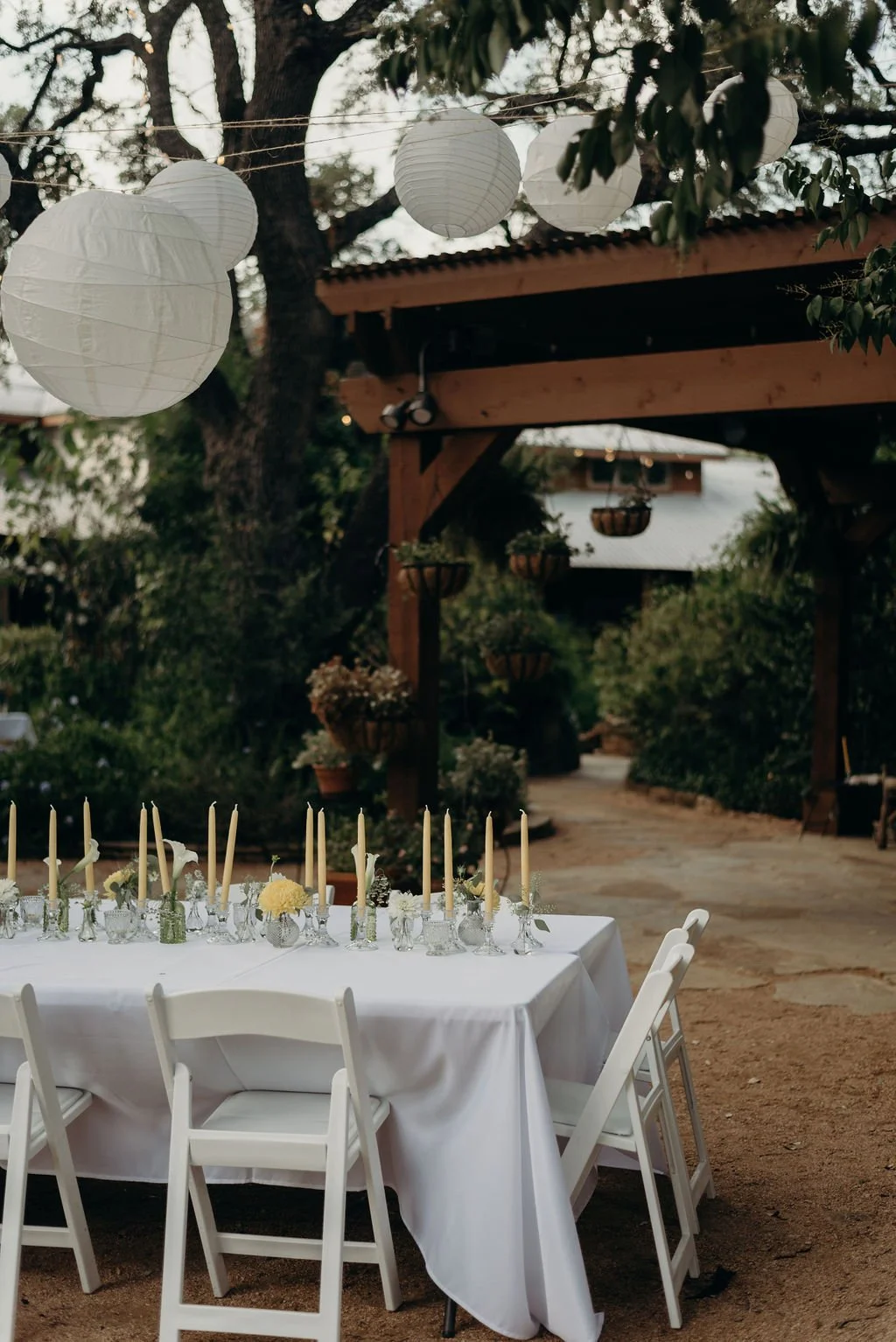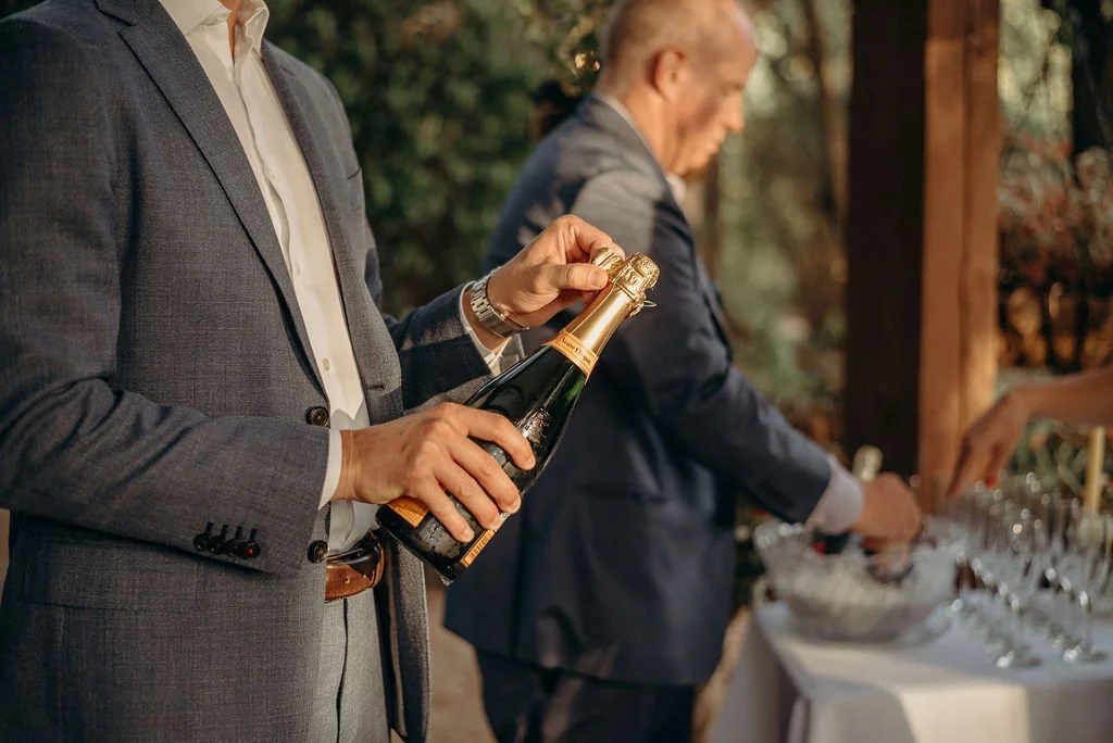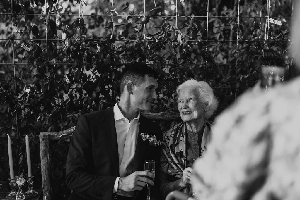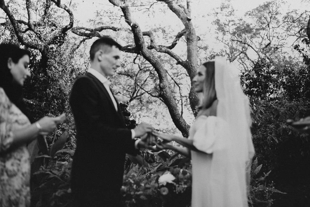 Kathryn and Oliver were married in August 2020 in an intimate outdoor ceremony surrounded by their closest friends and family. They exchanged vows in the Courtyard, embraced by lush greenery and the gentle sound of a bubbling fountain in the background. Following the ceremony, guests gathered for an outdoor catered dinner at the Promenade near the Pergola, where warm string lights created a soft, romantic glow. The couple captured portraits with their families in the surrounding meadows and fields, adding to the natural charm of the day. It was a heartfelt, sweet celebration made even more special with their dog by their side.