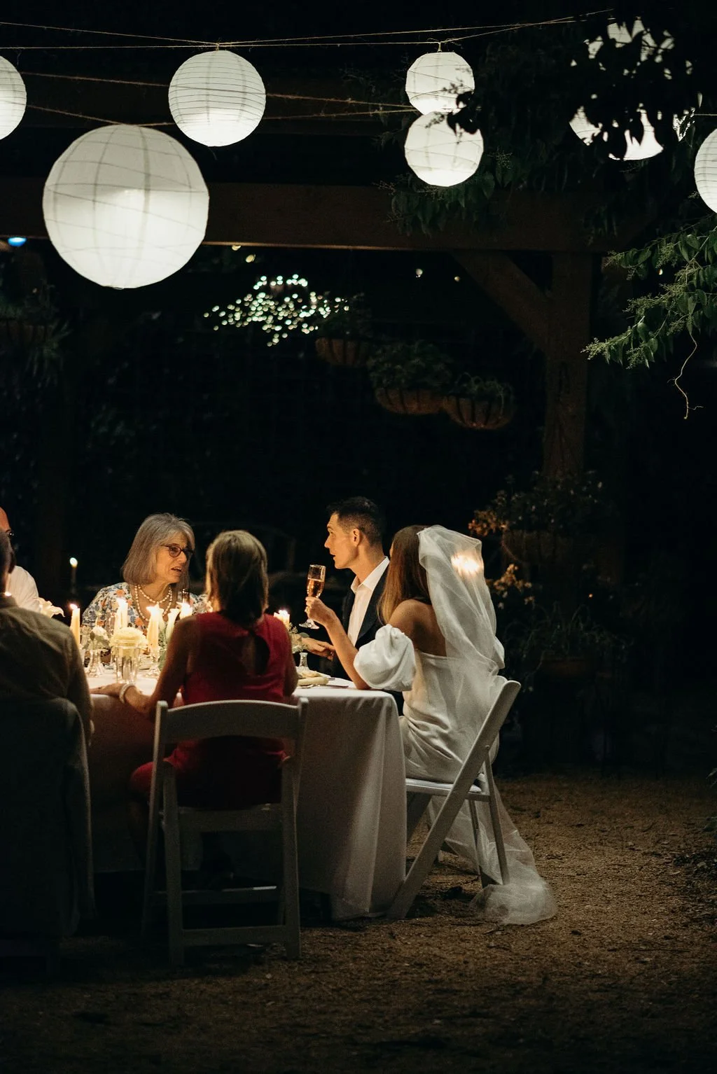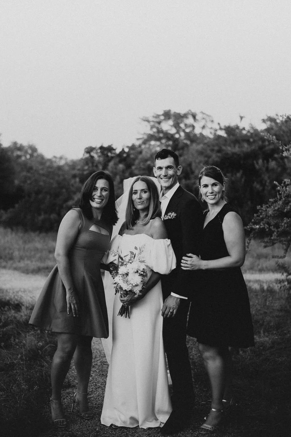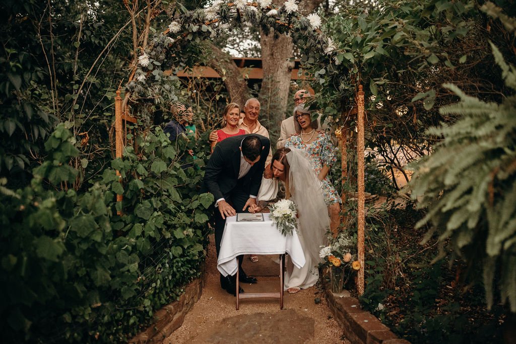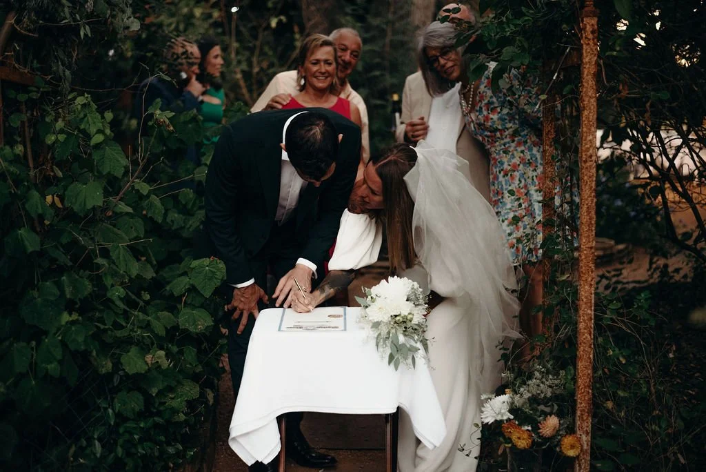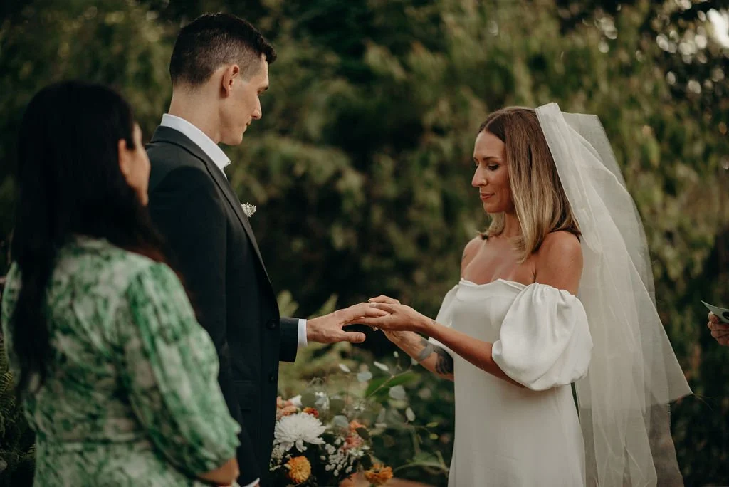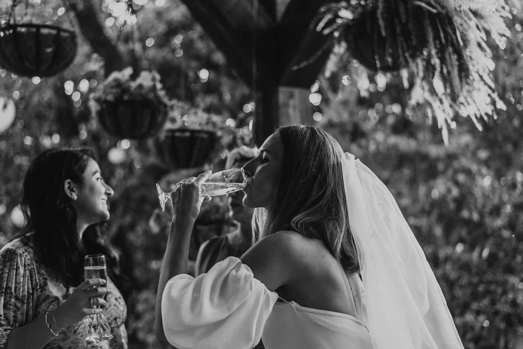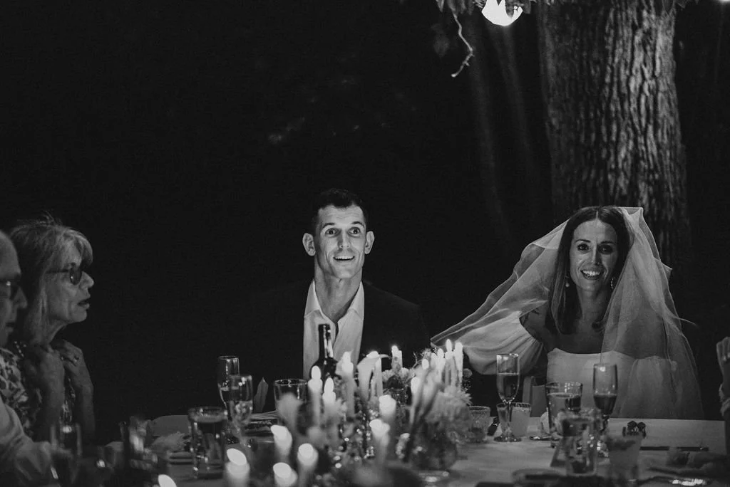 Kathryn and Oliver were married in August 2020 in an intimate outdoor ceremony surrounded by their closest friends and family. They exchanged vows in the Courtyard, embraced by lush greenery and the gentle sound of a bubbling fountain in the background. Following the ceremony, guests gathered for an outdoor catered dinner at the Promenade near the Pergola, where warm string lights created a soft, romantic glow. The couple captured portraits with their families in the surrounding meadows and fields, adding to the natural charm of the day. It was a heartfelt, sweet celebration made even more special with their dog by their side.