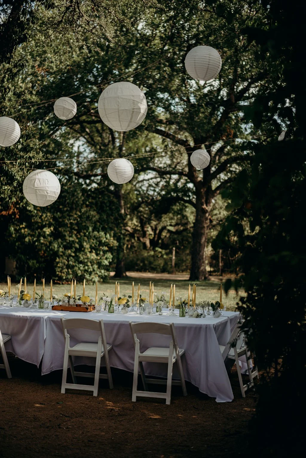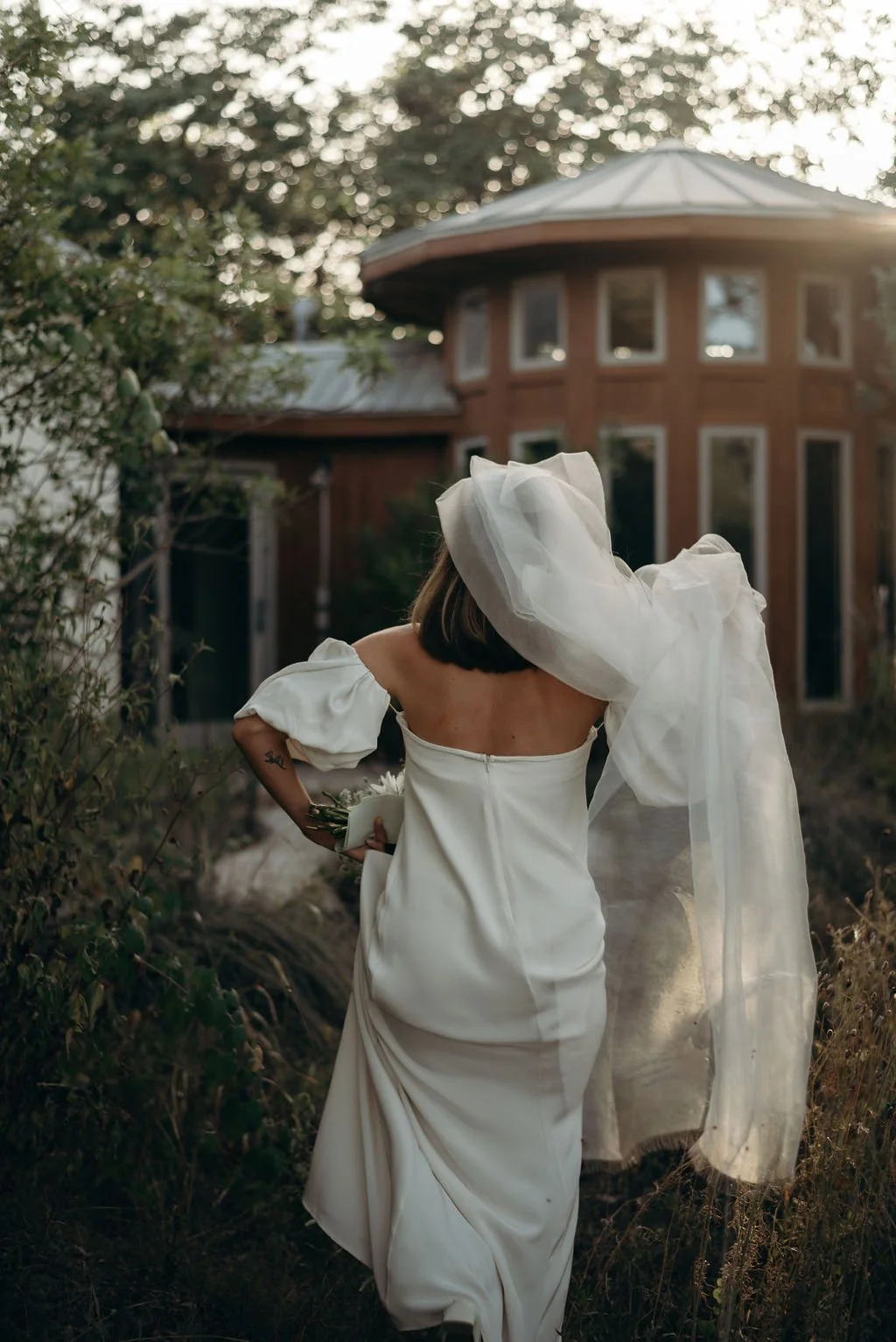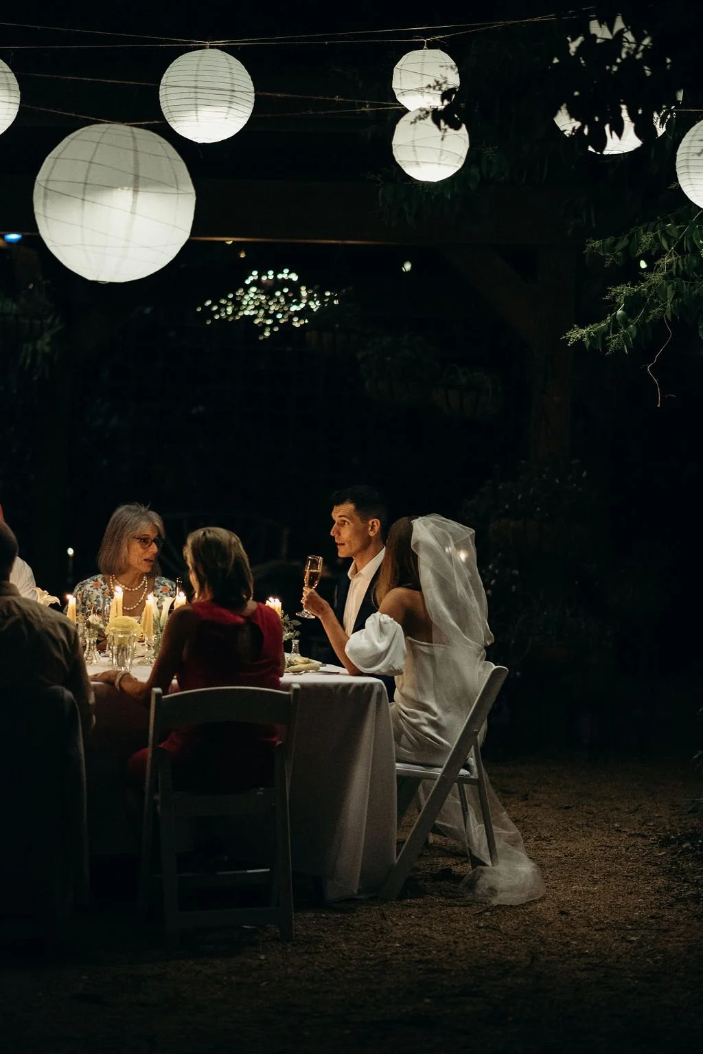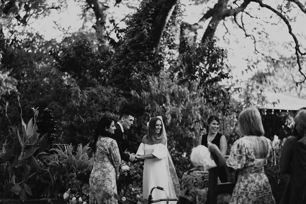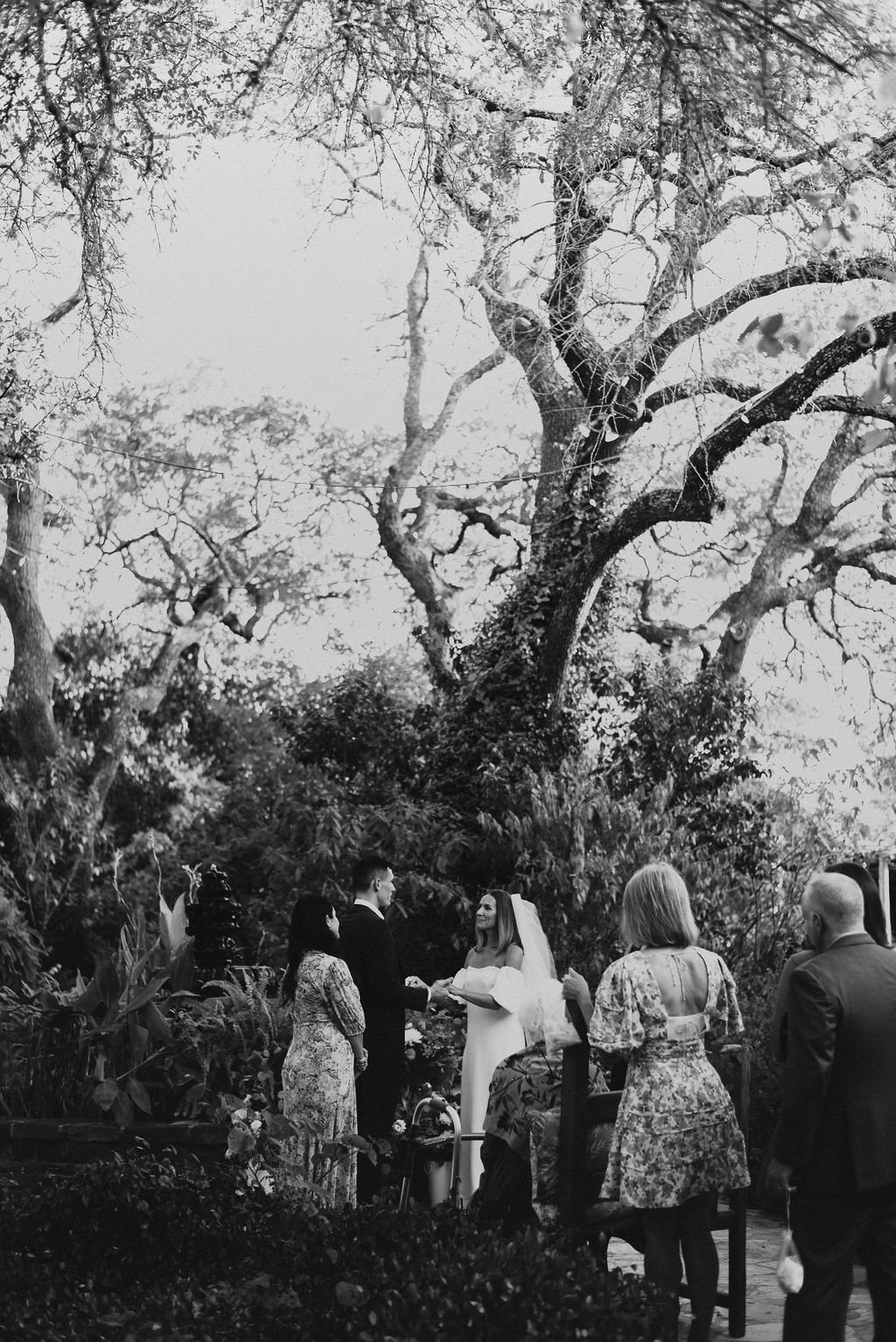 Kathryn and Oliver were married in August 2020 in an intimate outdoor ceremony surrounded by their closest friends and family. They exchanged vows in the Courtyard, embraced by lush greenery and the gentle sound of a bubbling fountain in the background. Following the ceremony, guests gathered for an outdoor catered dinner at the Promenade near the Pergola, where warm string lights created a soft, romantic glow. The couple captured portraits with their families in the surrounding meadows and fields, adding to the natural charm of the day. It was a heartfelt, sweet celebration made even more special with their dog by their side.