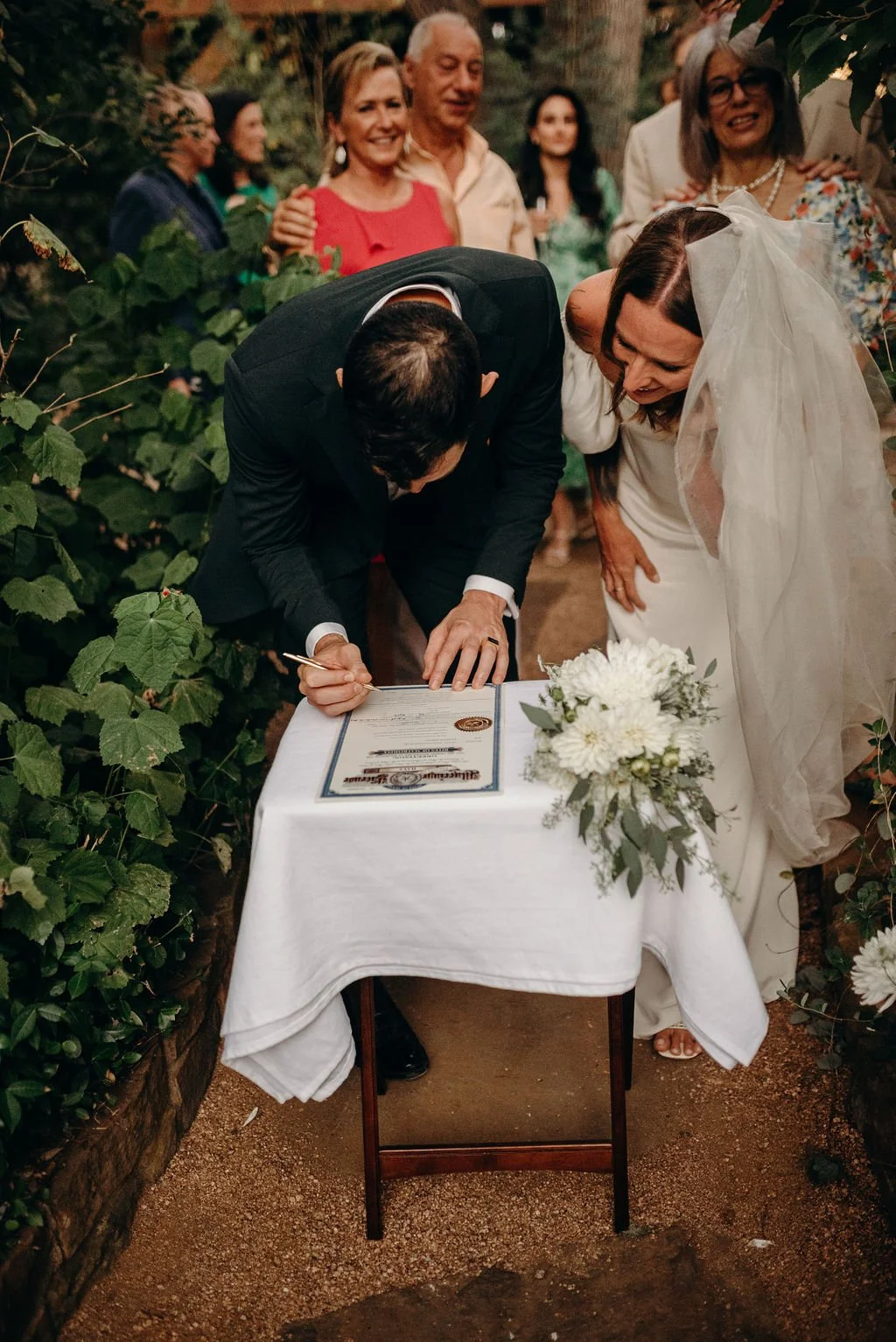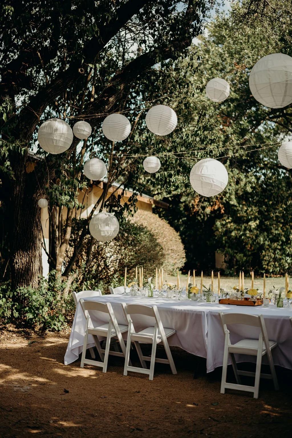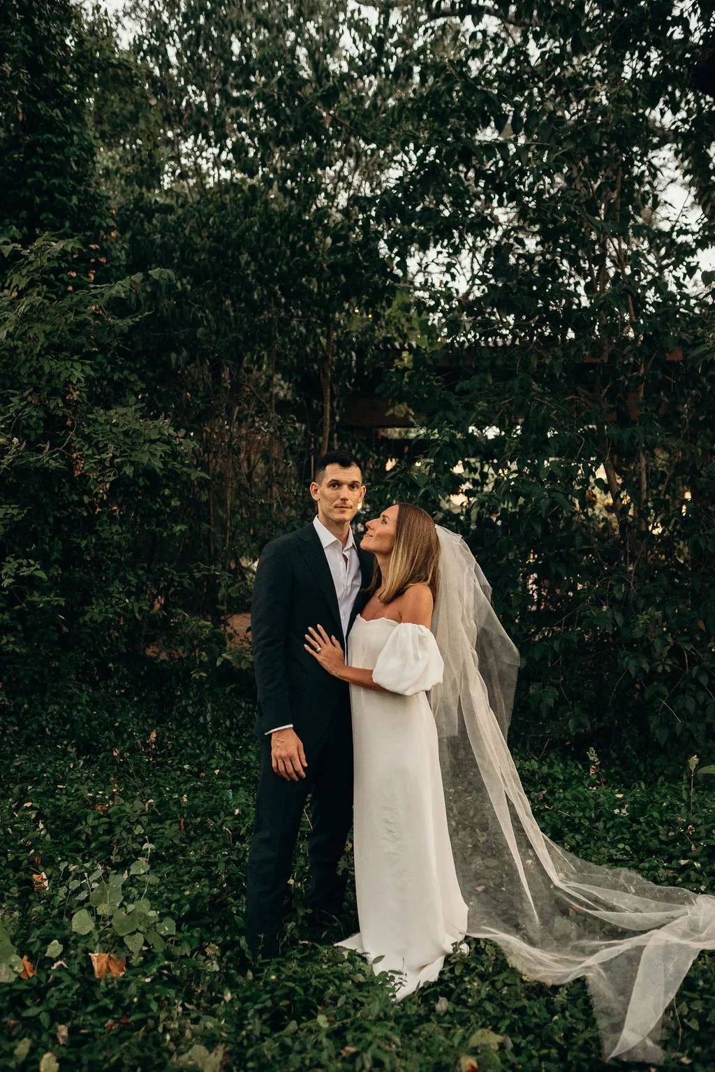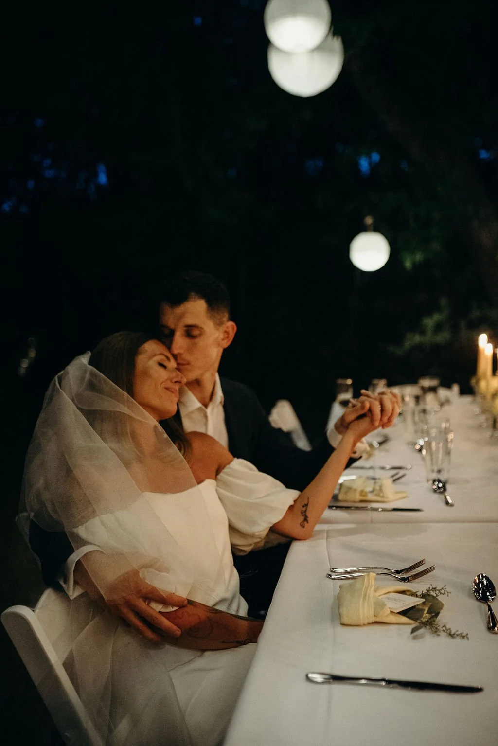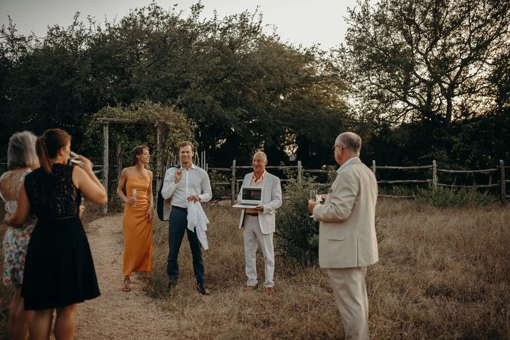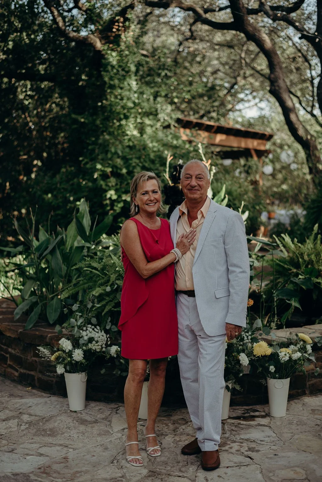 Kathryn and Oliver were married in August 2020 in an intimate outdoor ceremony surrounded by their closest friends and family. They exchanged vows in the Courtyard, embraced by lush greenery and the gentle sound of a bubbling fountain in the background. Following the ceremony, guests gathered for an outdoor catered dinner at the Promenade near the Pergola, where warm string lights created a soft, romantic glow. The couple captured portraits with their families in the surrounding meadows and fields, adding to the natural charm of the day. It was a heartfelt, sweet celebration made even more special with their dog by their side.