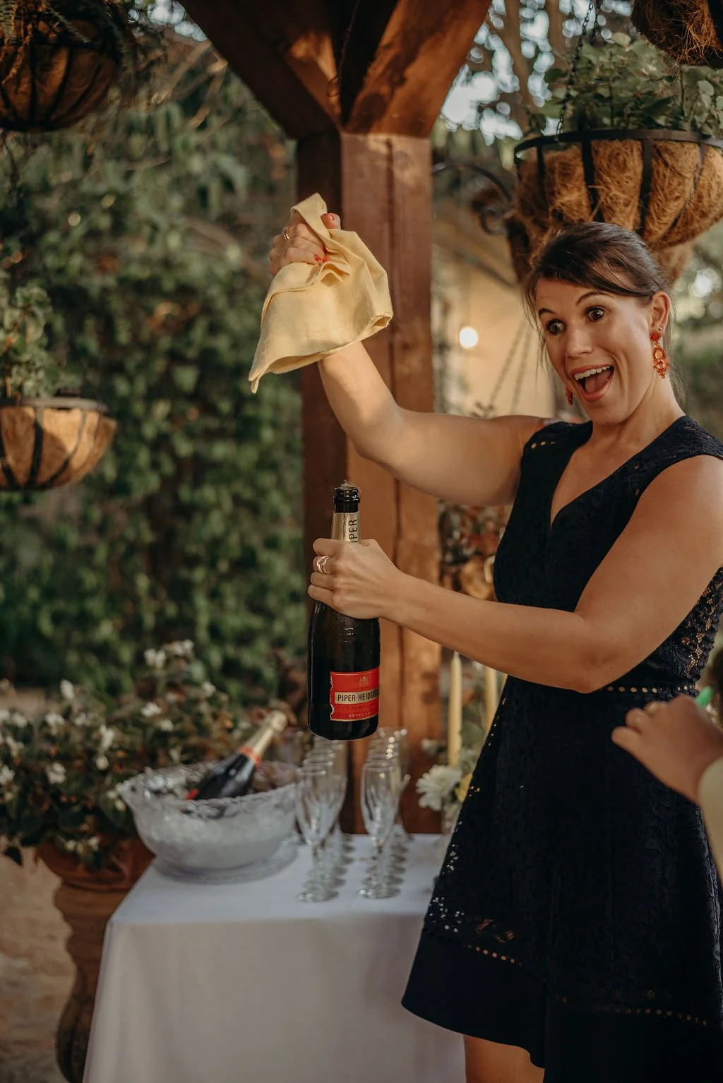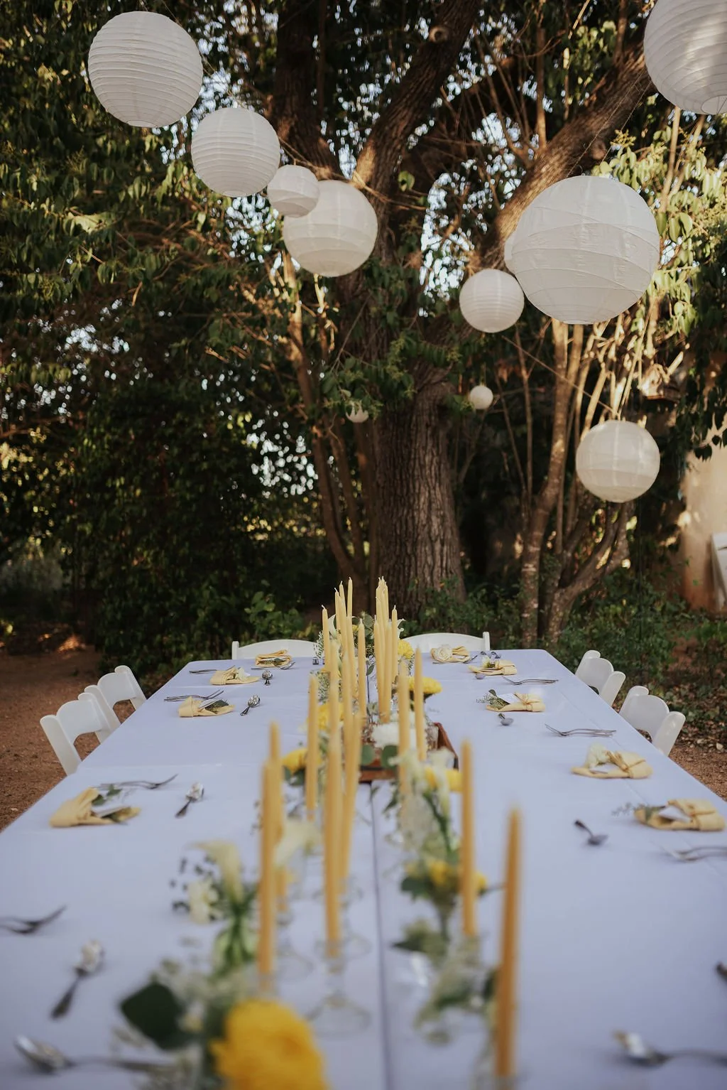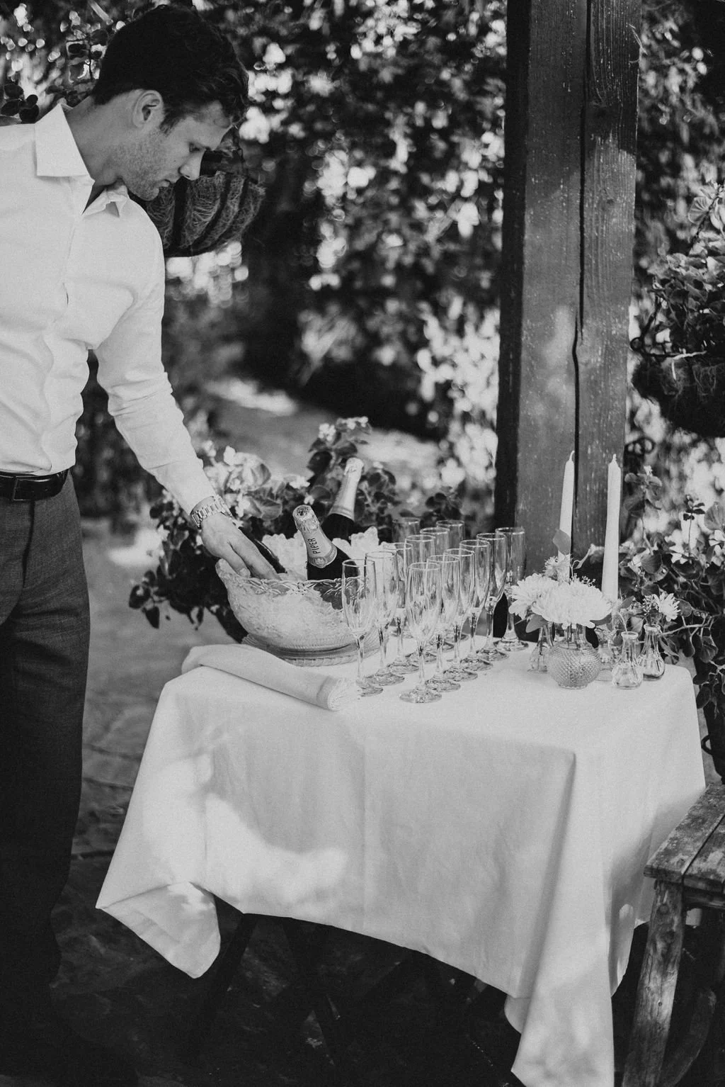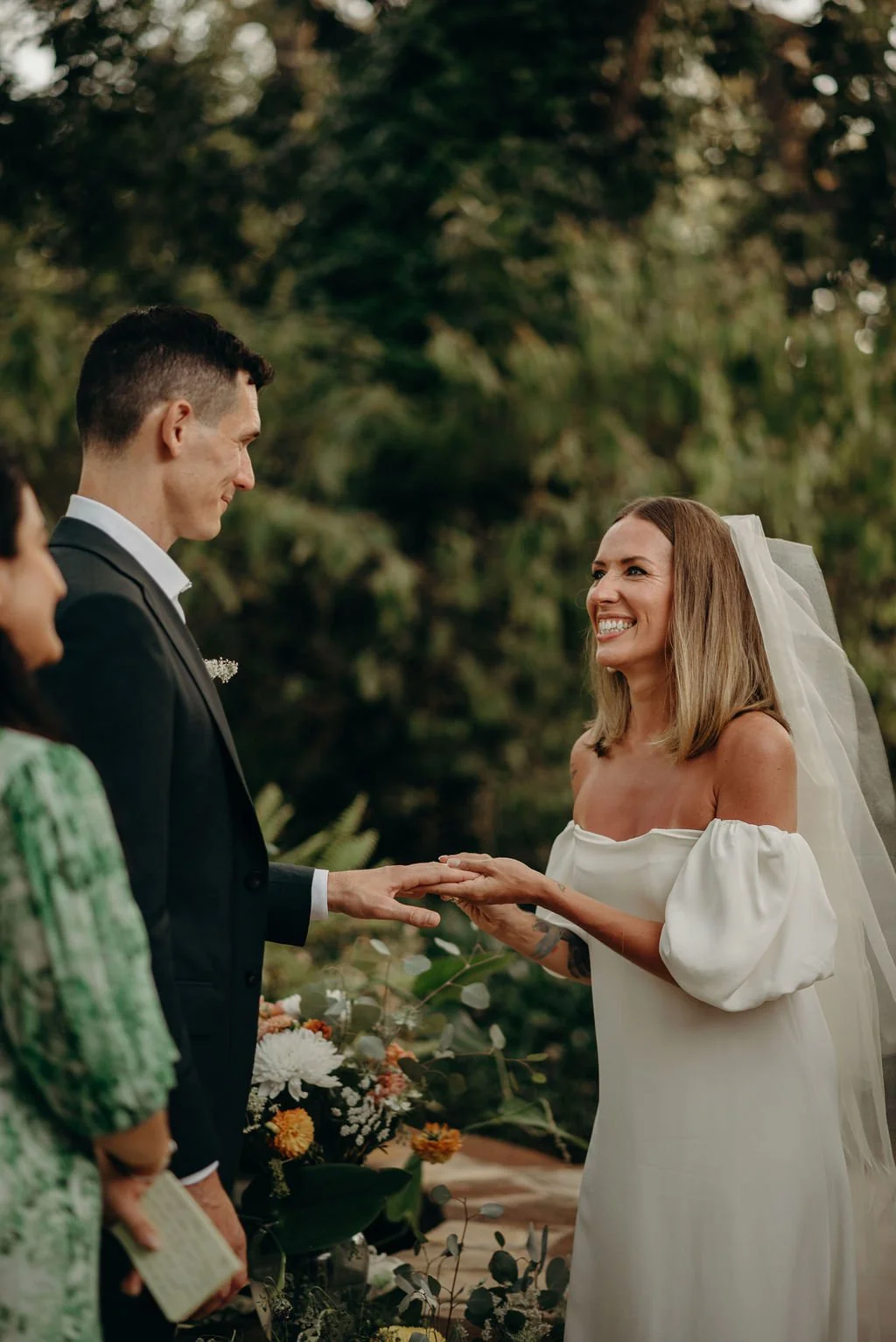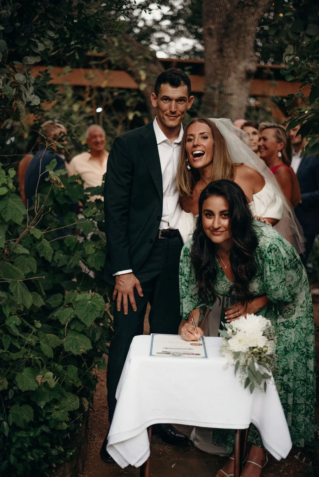 Kathryn and Oliver were married in August 2020 in an intimate outdoor ceremony surrounded by their closest friends and family. They exchanged vows in the Courtyard, embraced by lush greenery and the gentle sound of a bubbling fountain in the background. Following the ceremony, guests gathered for an outdoor catered dinner at the Promenade near the Pergola, where warm string lights created a soft, romantic glow. The couple captured portraits with their families in the surrounding meadows and fields, adding to the natural charm of the day. It was a heartfelt, sweet celebration made even more special with their dog by their side.