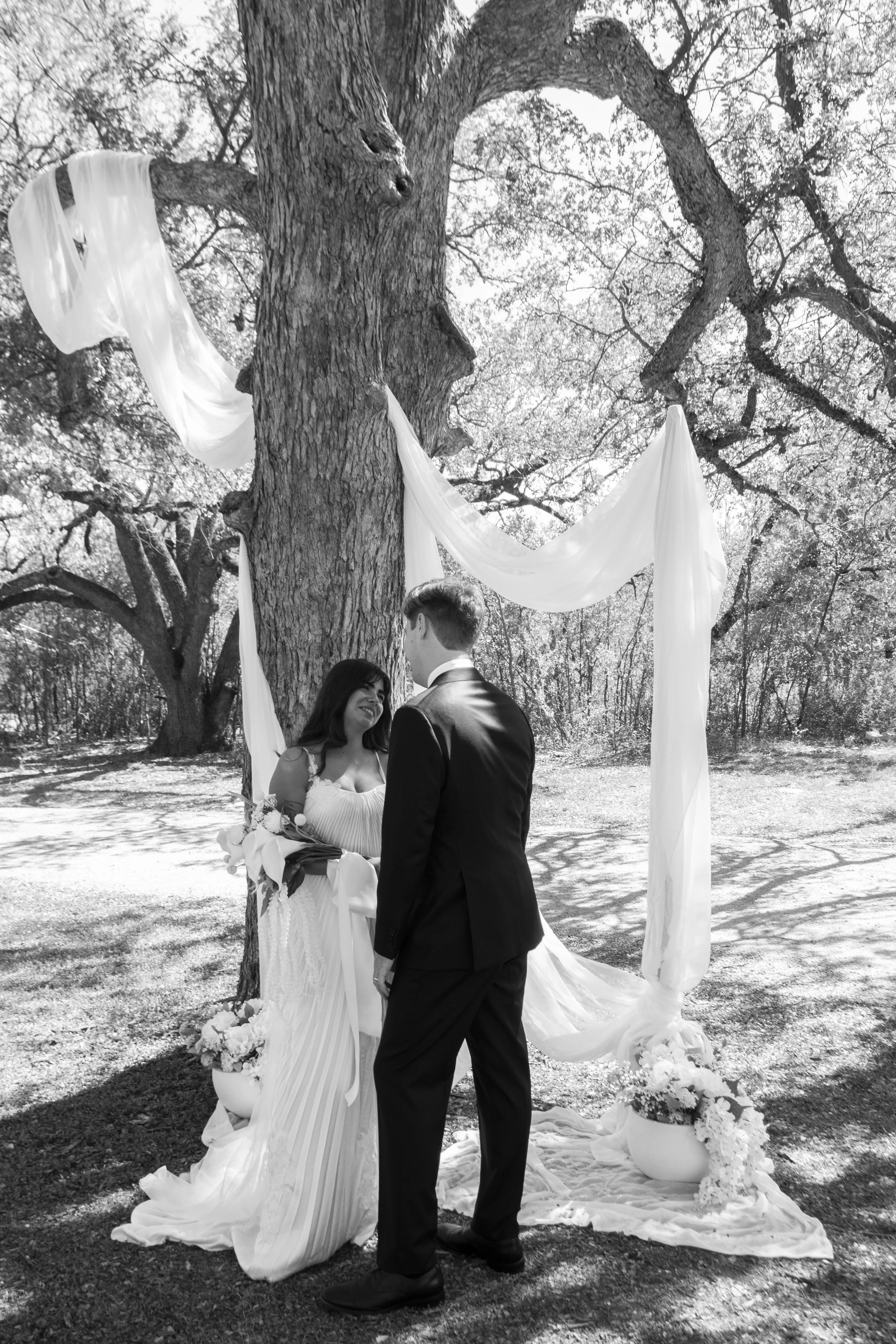 Bethany and Evan kept their October 2025 wedding simple and true to Texas, exchanging vows beneath the Big Tree before gathering for a small reception at the Hideout. The real magic lived in the in-between moments that made the day unforgettable.