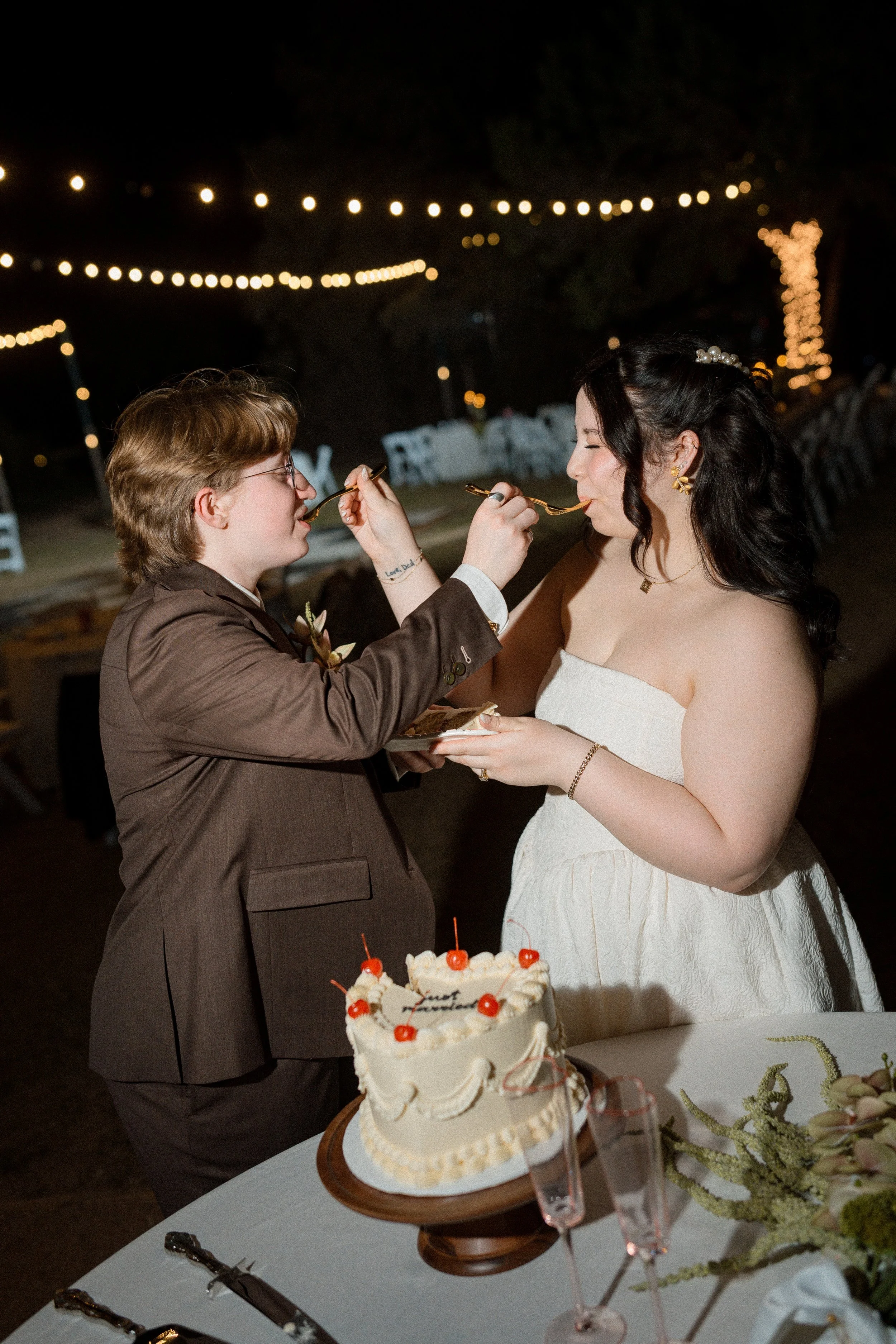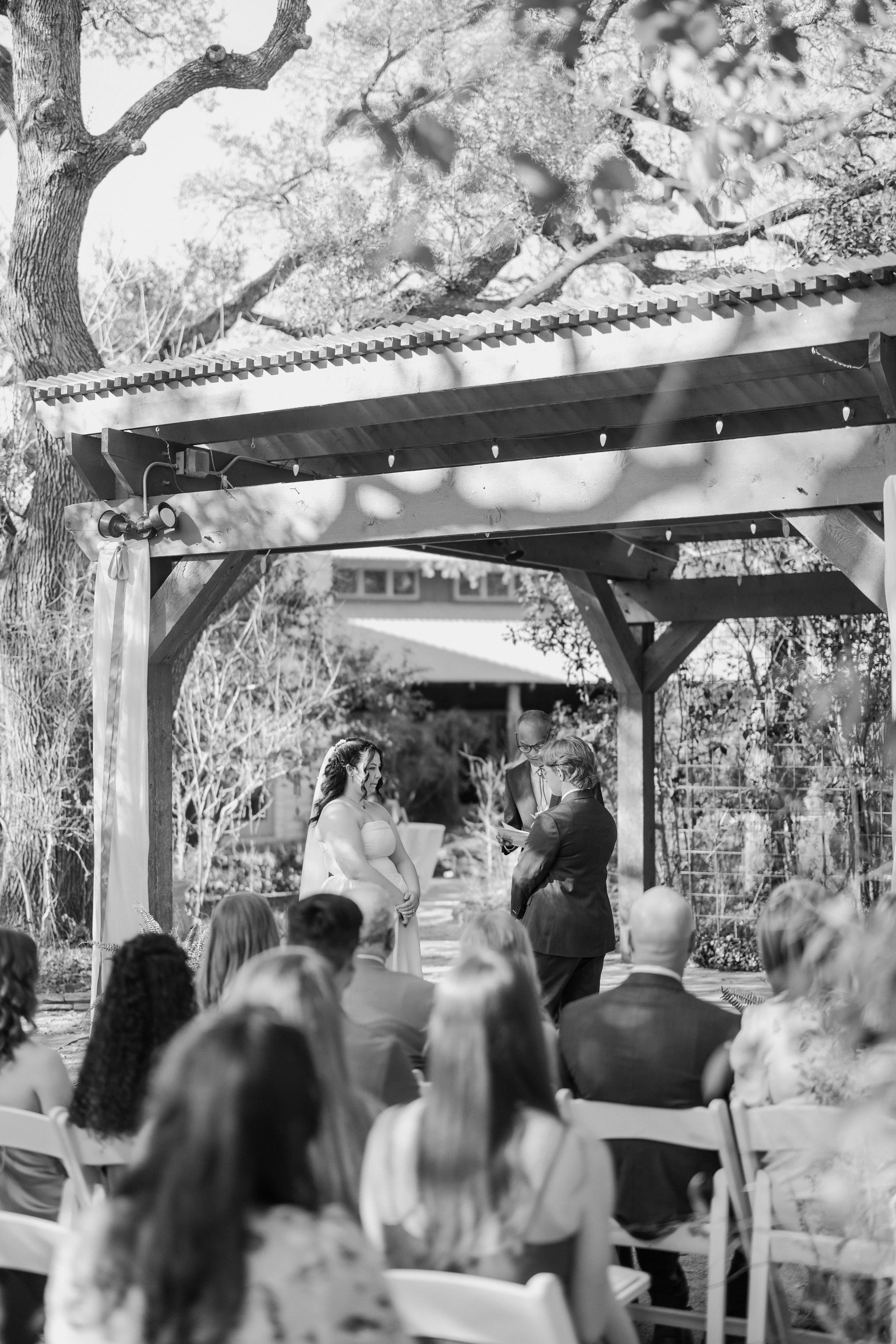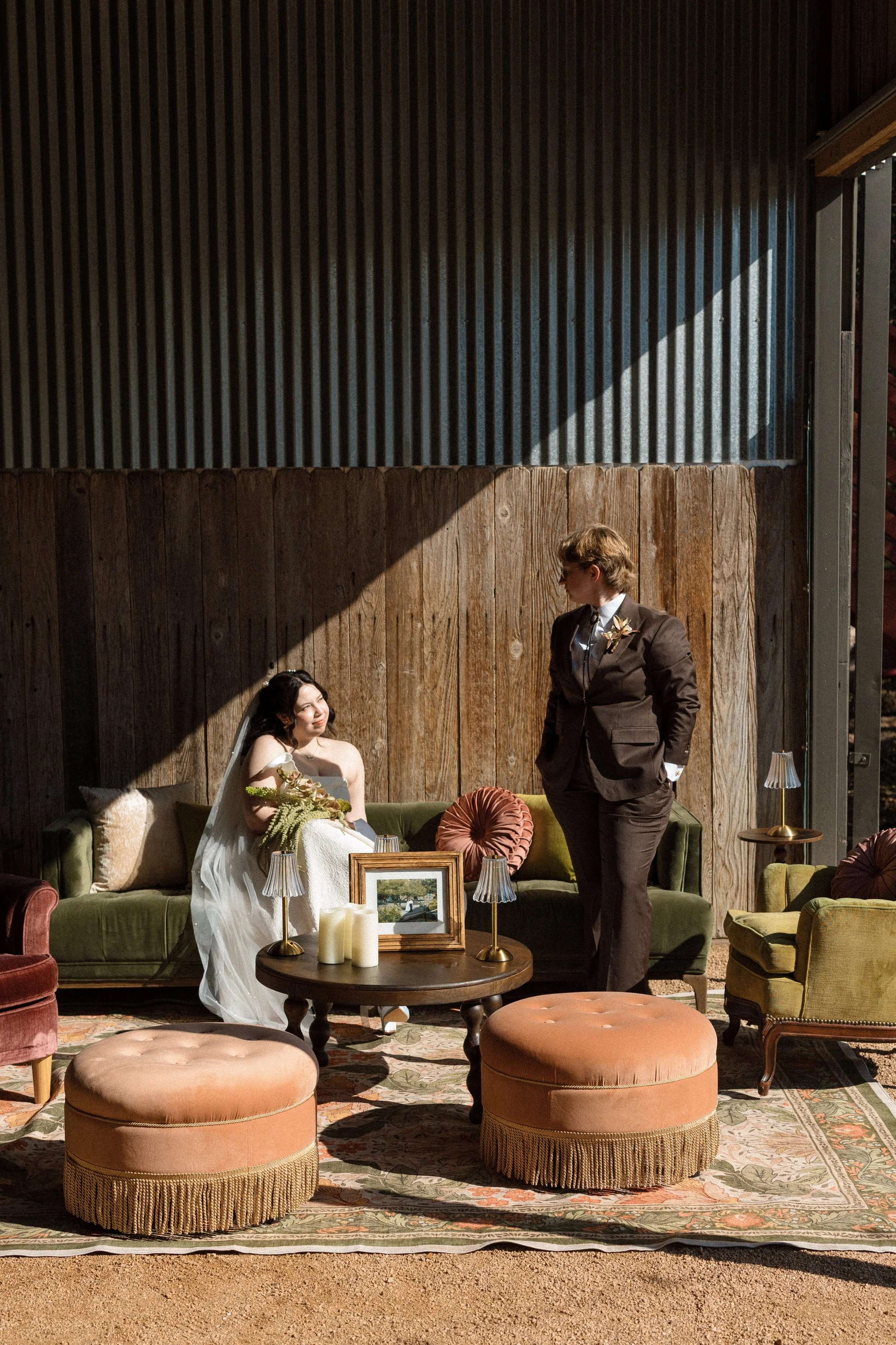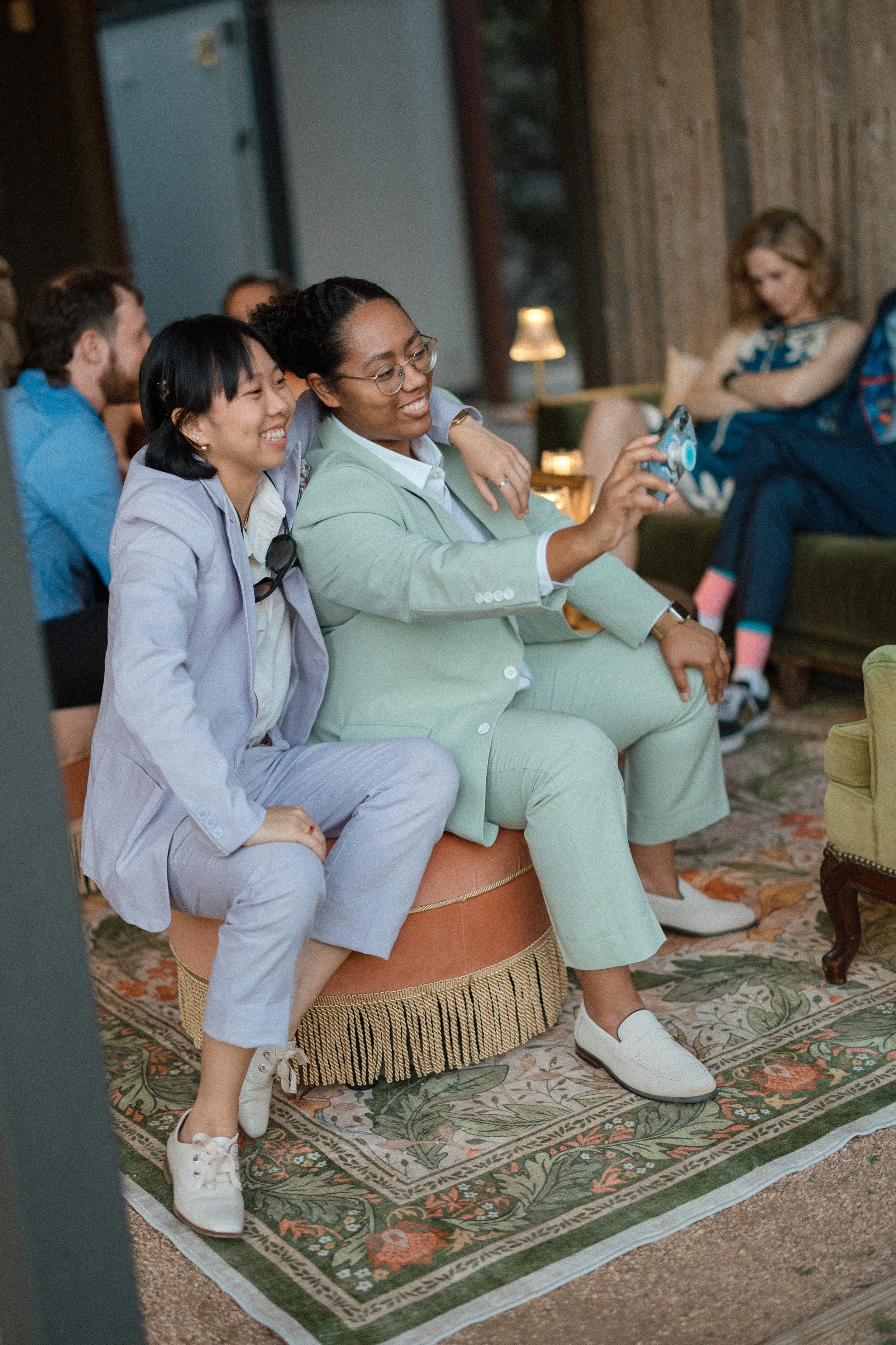 Hannah and Catherine began their day getting ready in their own suites, Hannah in Casadecas and Catherine in Sunrise Casita. They shared a quiet moment for portraits in the courtyard before making their way to the Pergola for their heartfelt ceremony. Afterward, they celebrated into the evening at Horseshoe Meadow, dancing under the stars and soaking in the magic of the night.