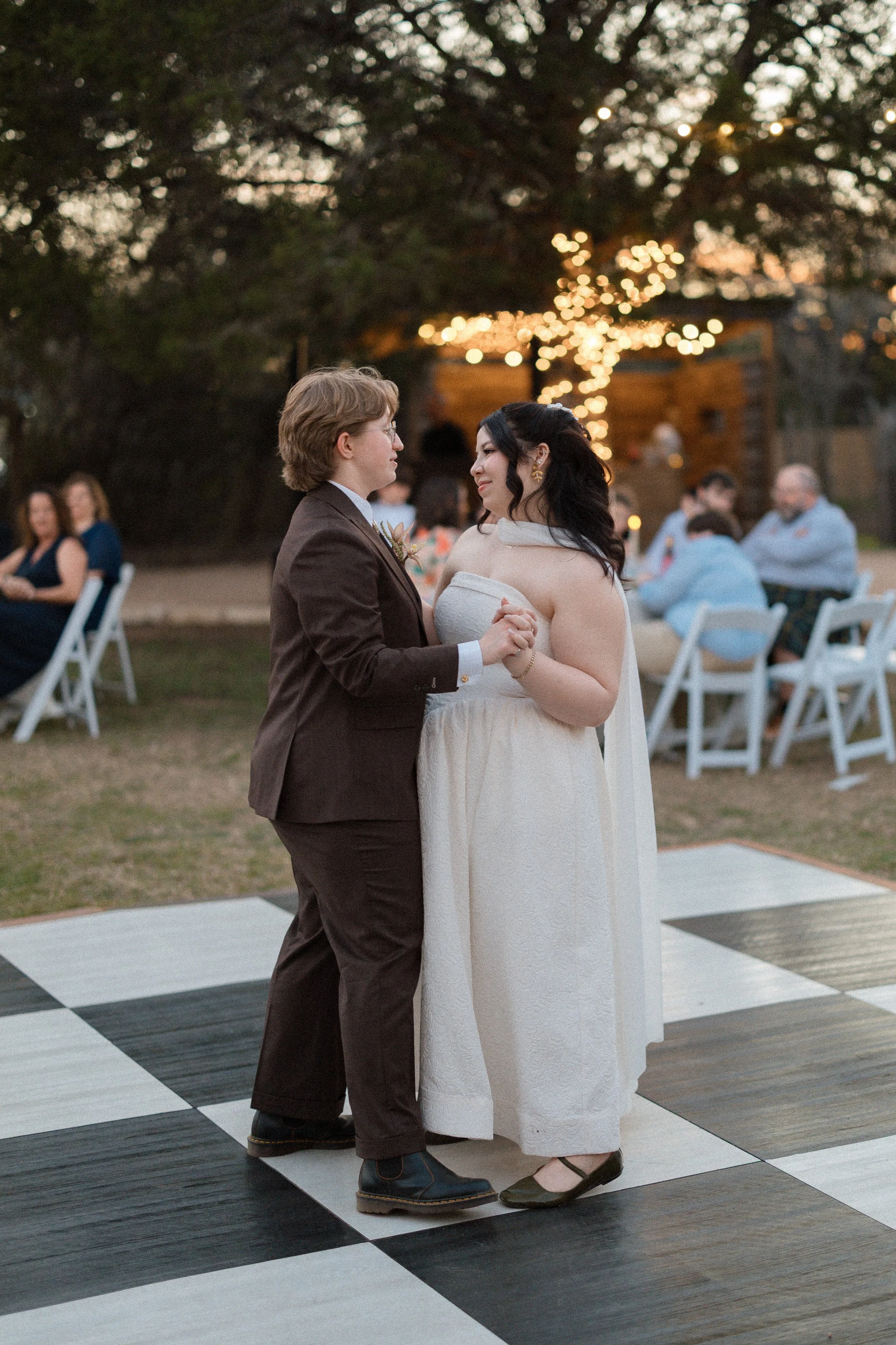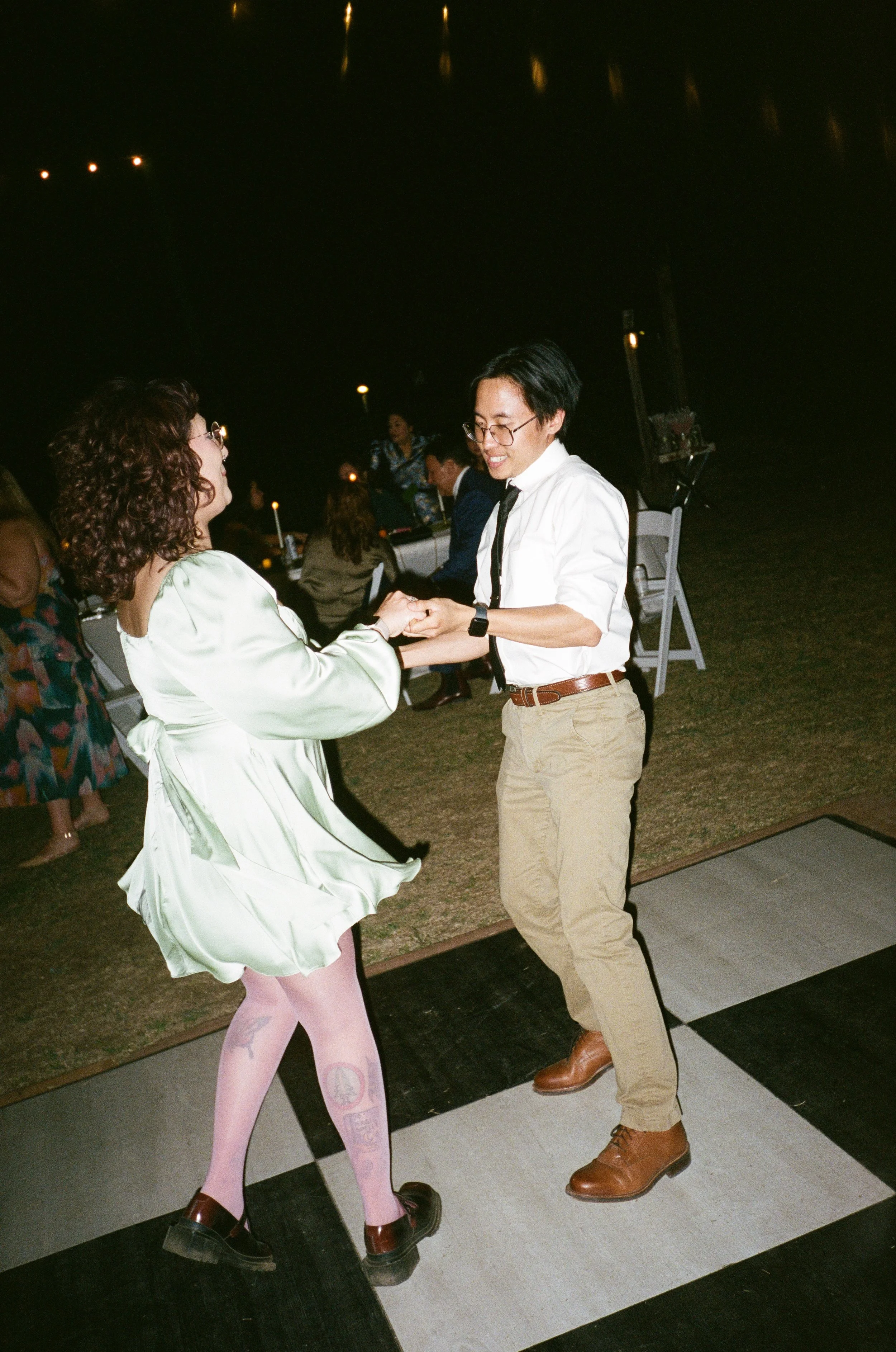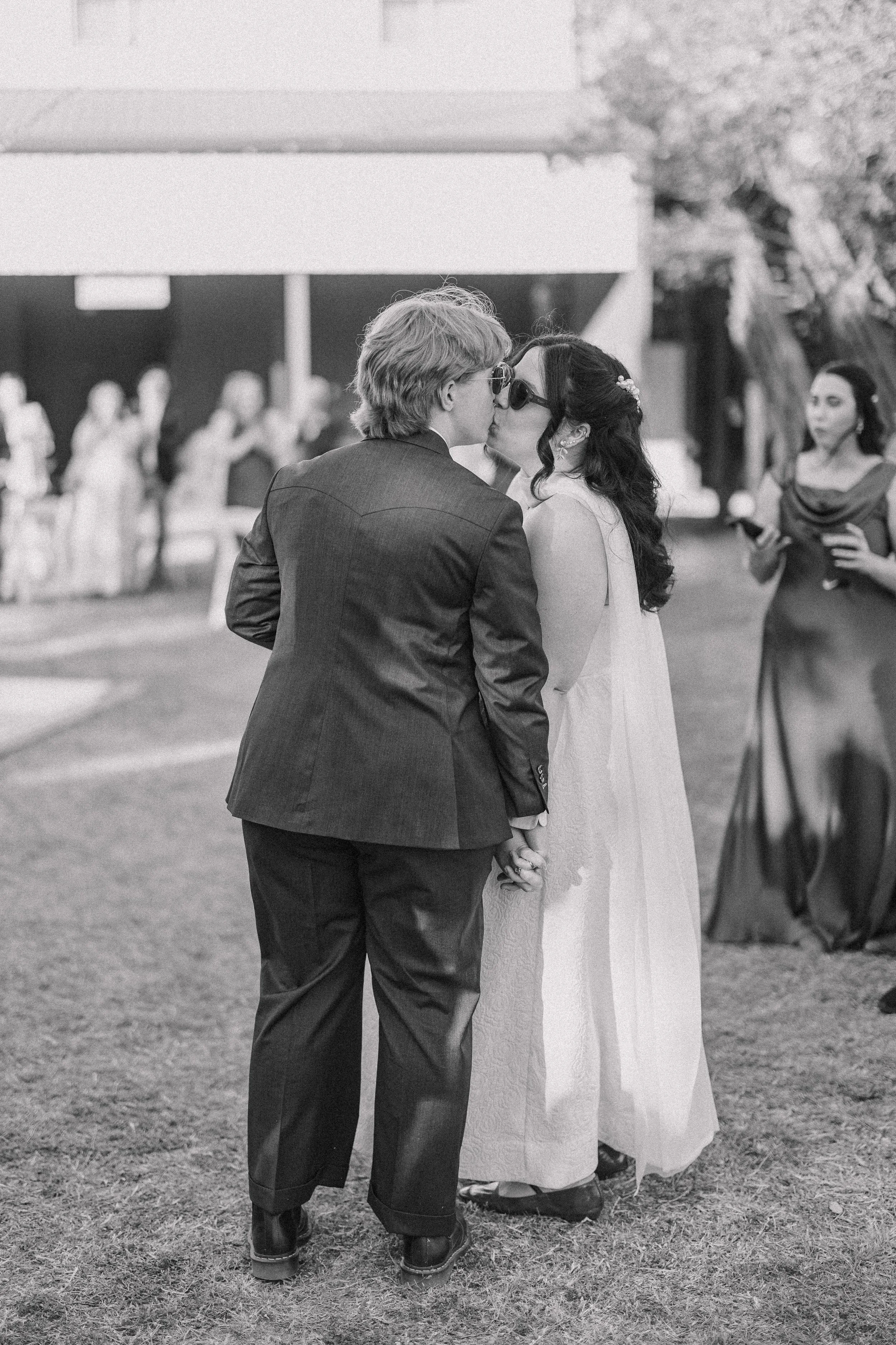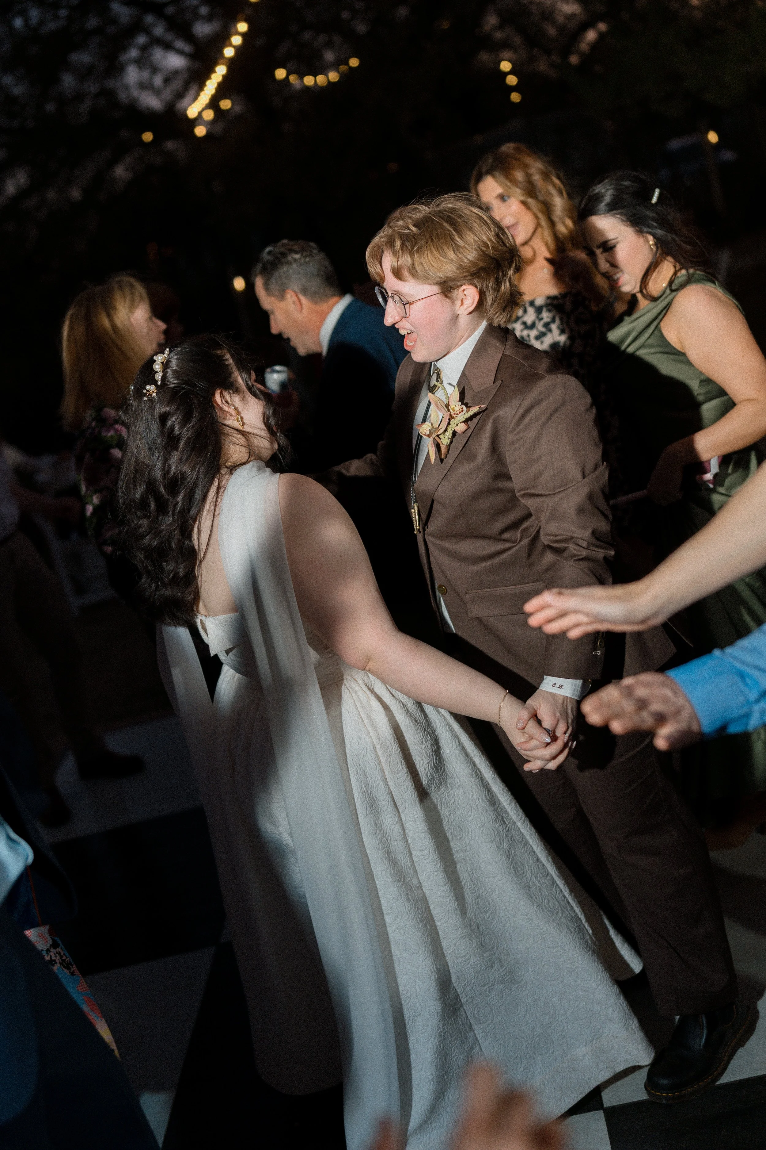 Hannah and Catherine began their day getting ready in their own suites, Hannah in Casadecas and Catherine in Sunrise Casita. They shared a quiet moment for portraits in the courtyard before making their way to the Pergola for their heartfelt ceremony. Afterward, they celebrated into the evening at Horseshoe Meadow, dancing under the stars and soaking in the magic of the night.