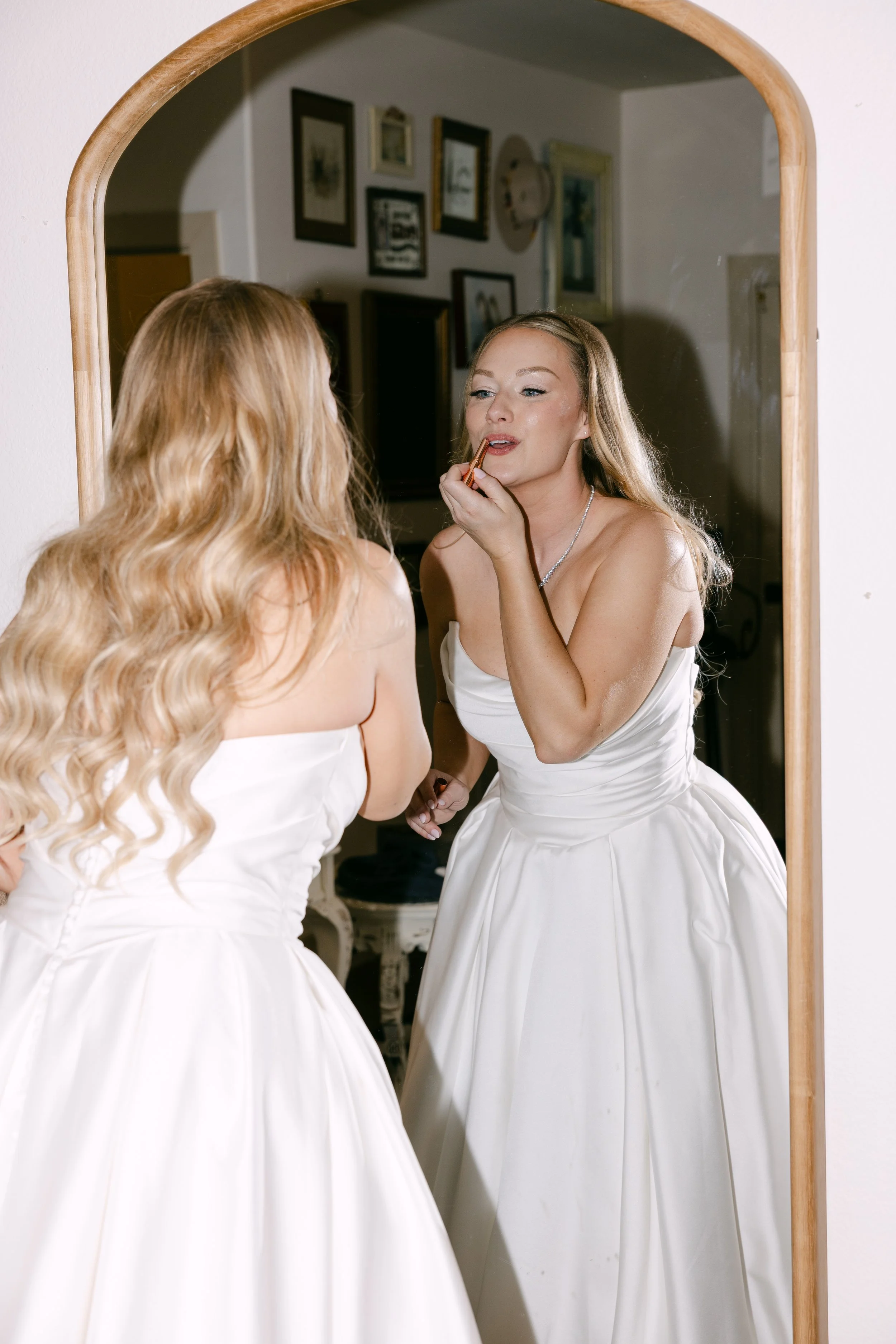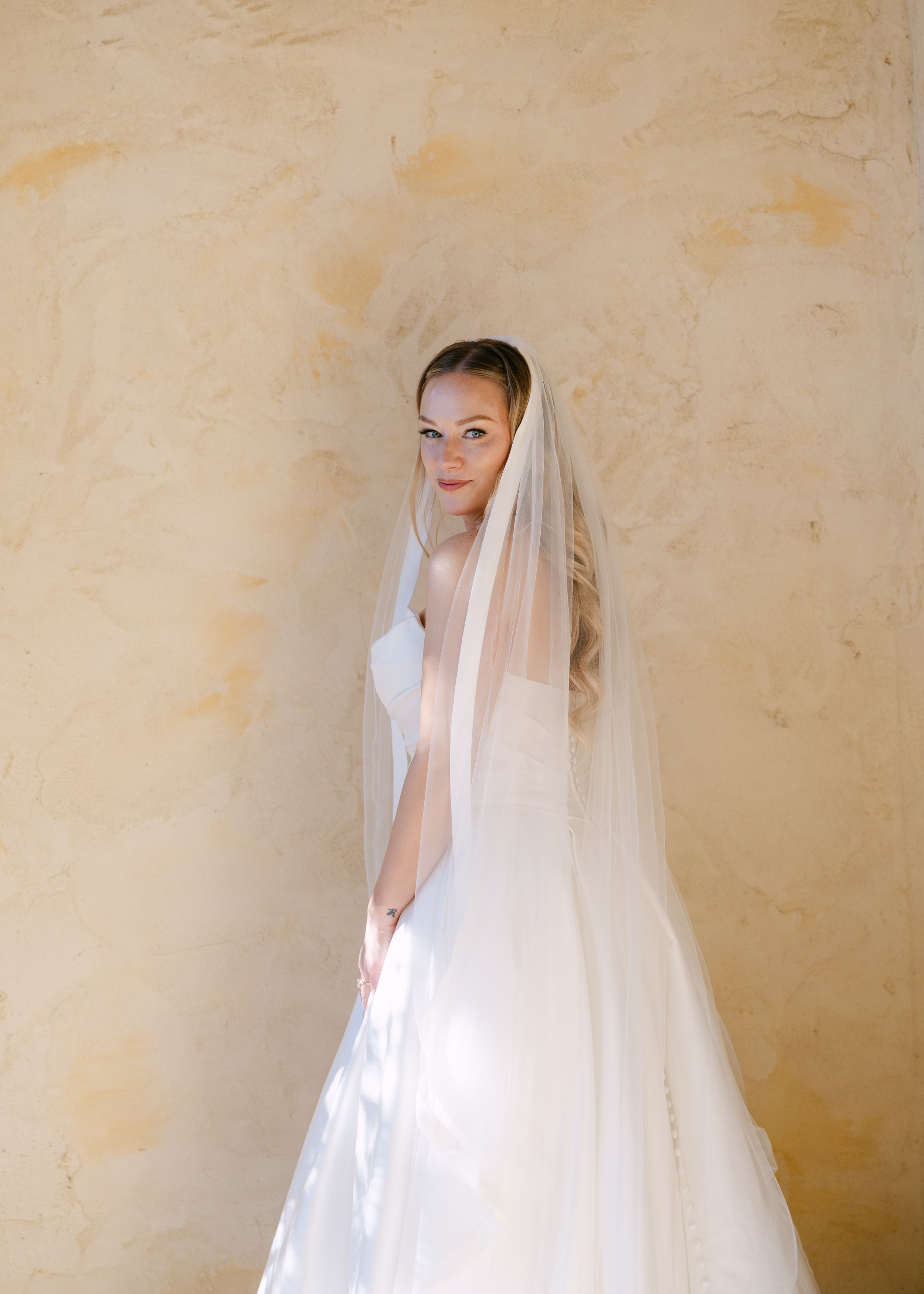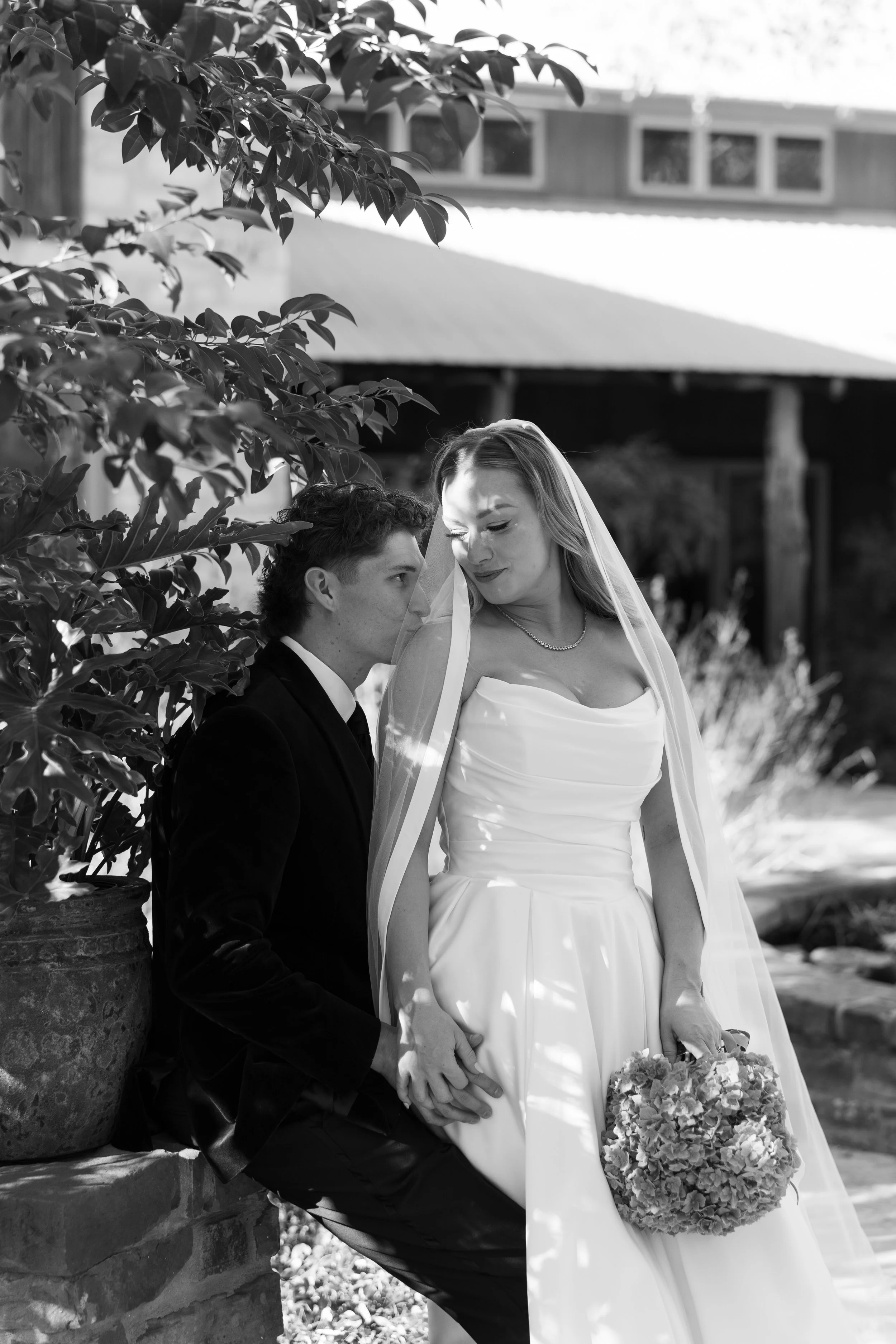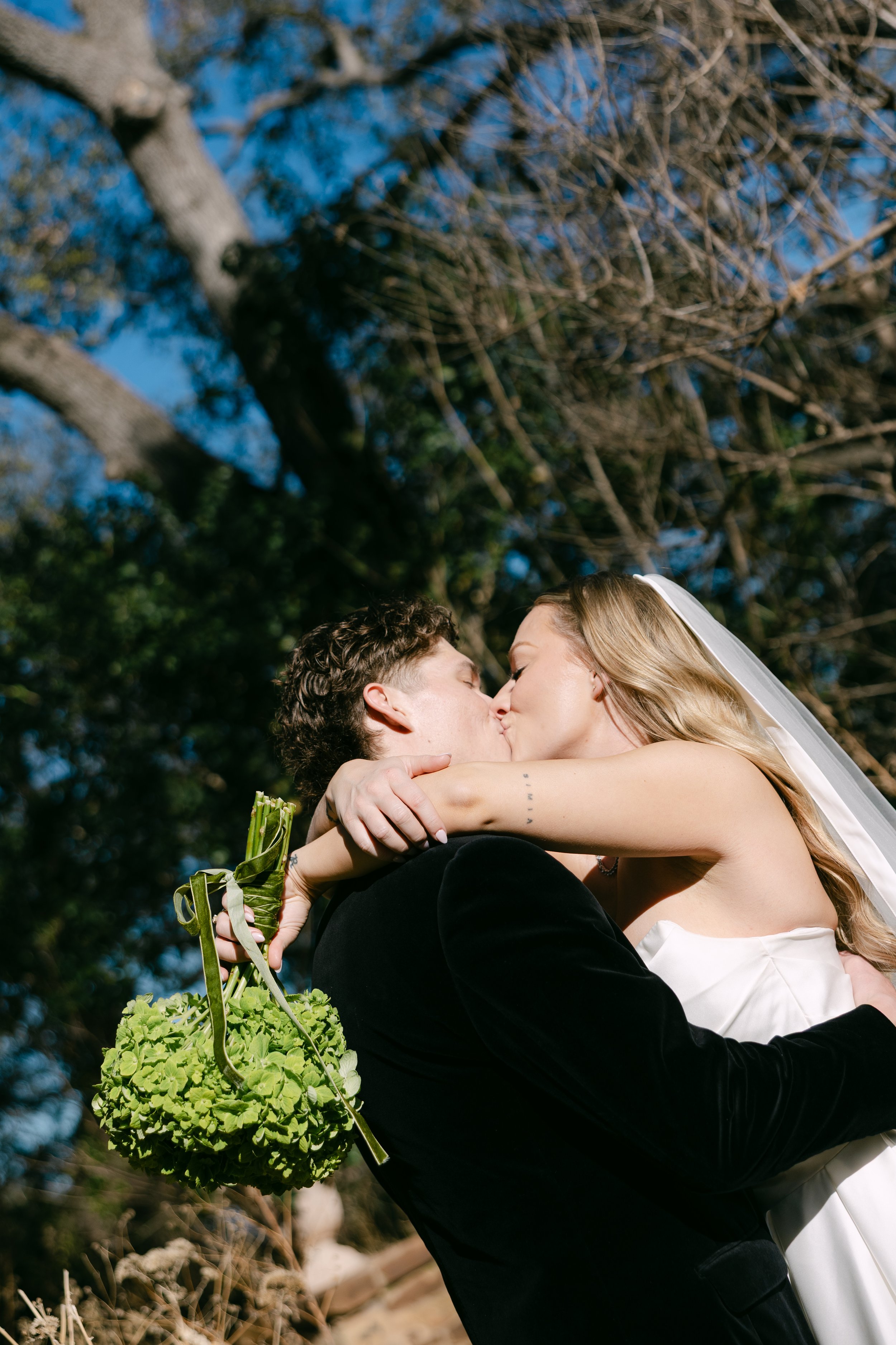On the wedding day, Kylie started with bridal portraits in Casadecas, followed by portraits of the couple together around the property. They then exchanged vows in a private courtyard ceremony with just the two of them and their officiant. Afterward, they joined their friends and family at the Promenade for their reception.