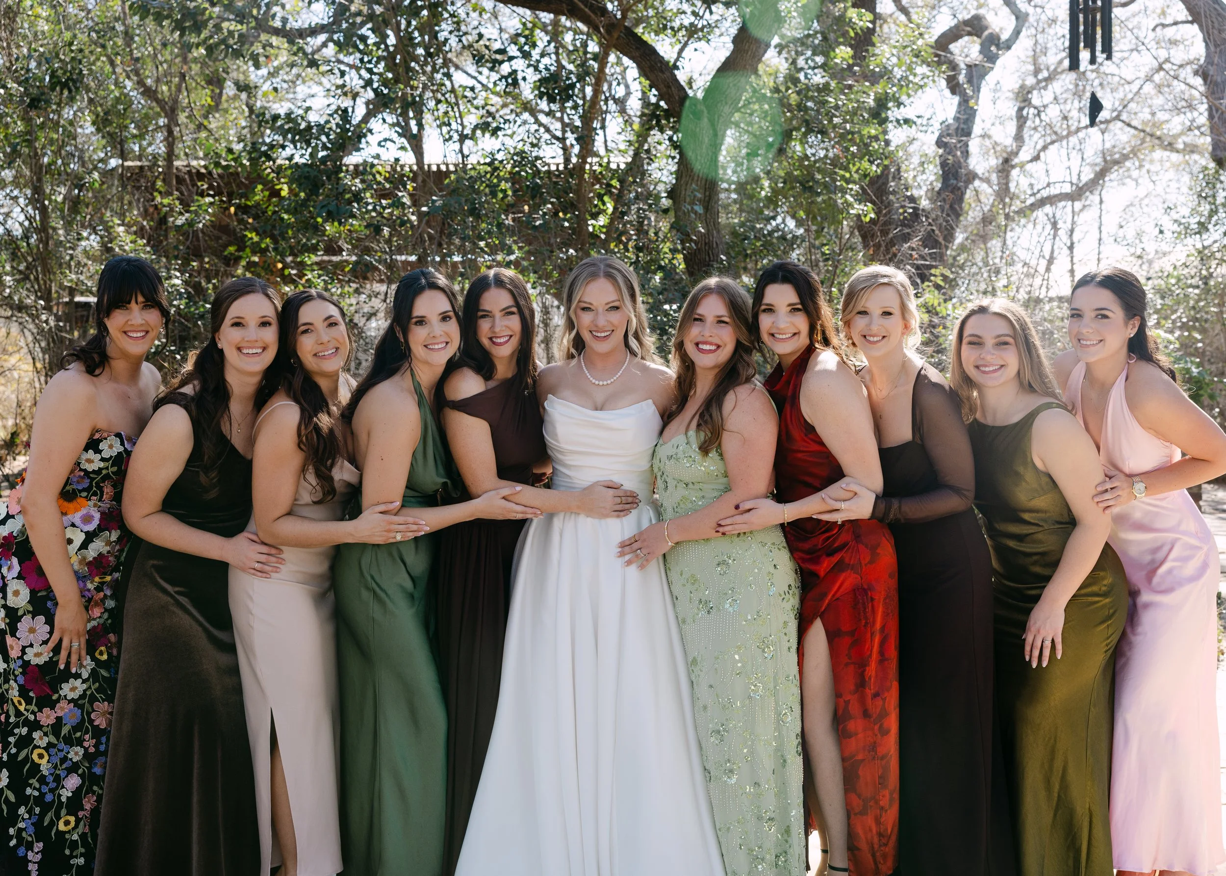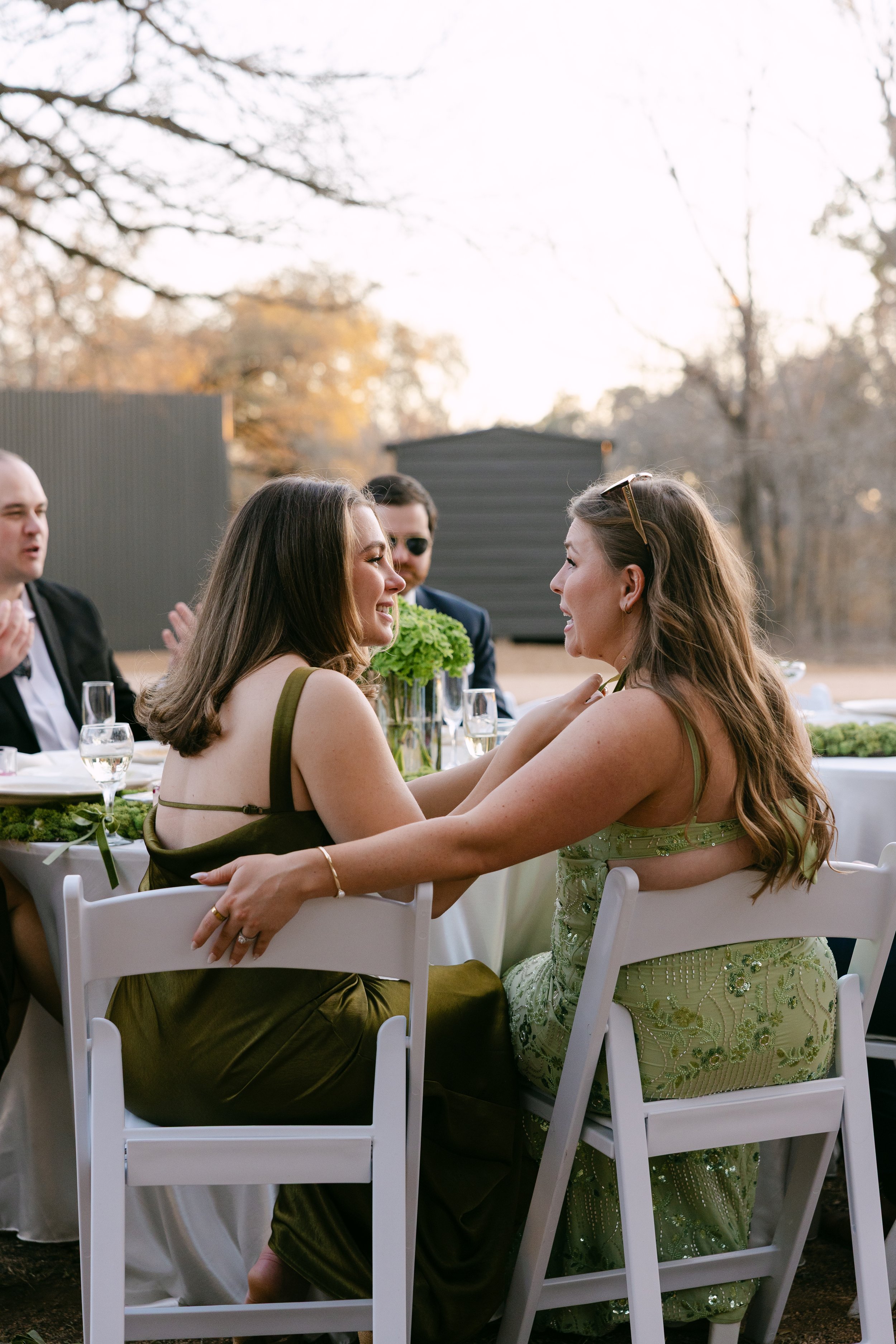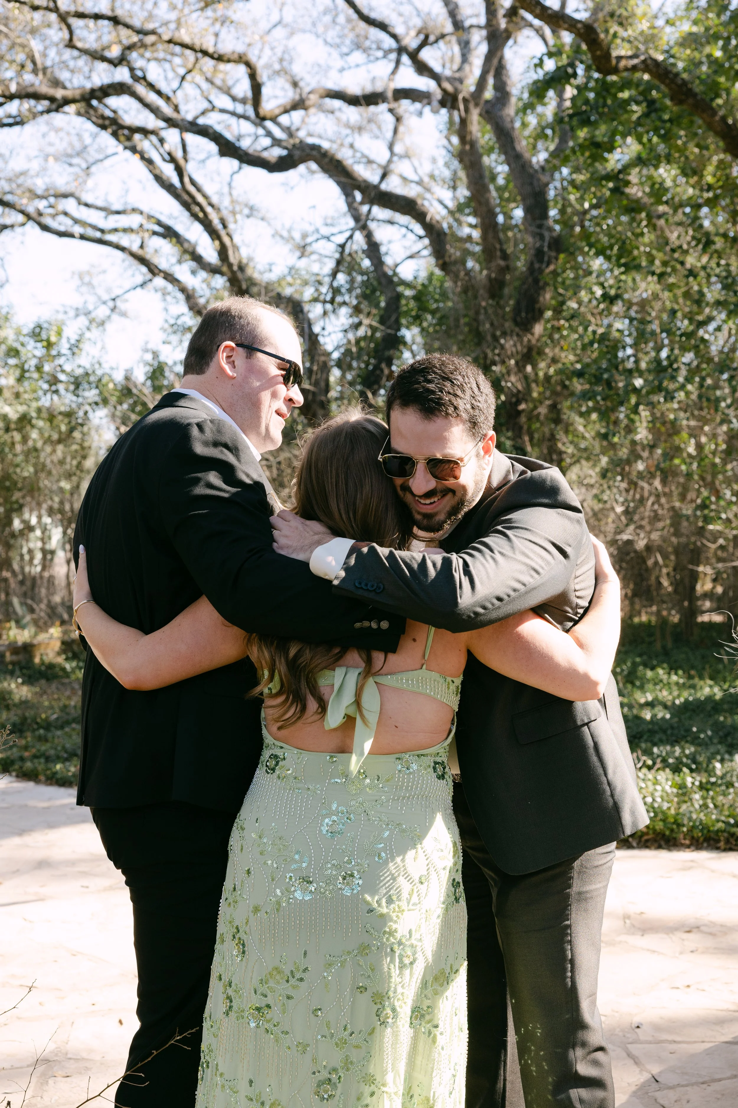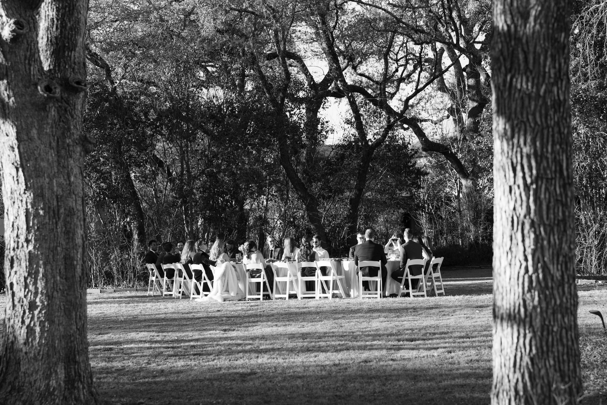 Kylie and Gunner celebrated their February 2026 wedding with a beautifully intimate weekend at Hudson Bend Ranch. The festivities began the night before with a rehearsal dinner set beneath the pergola, where they hosted a cozy dinner party with their closest guests.