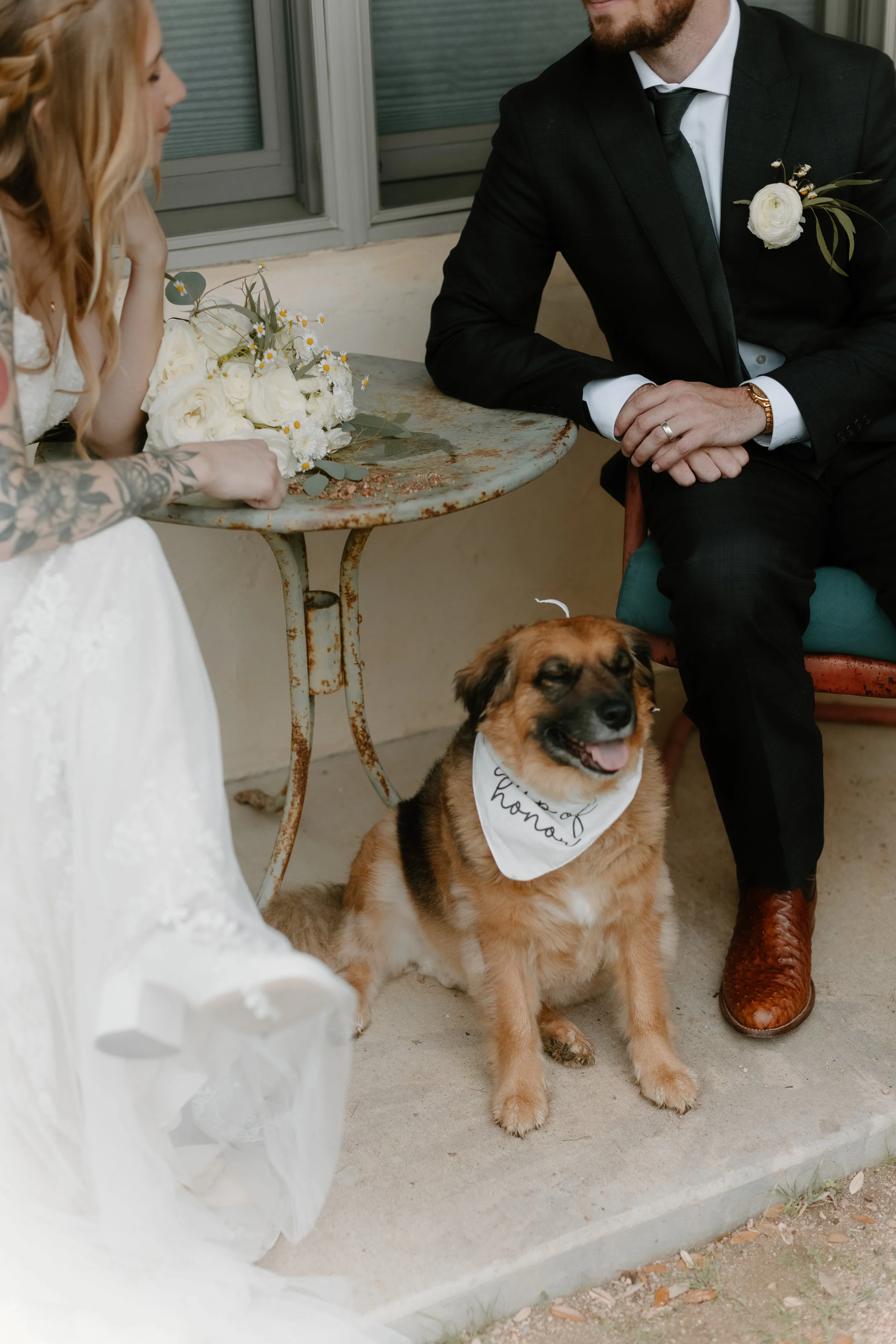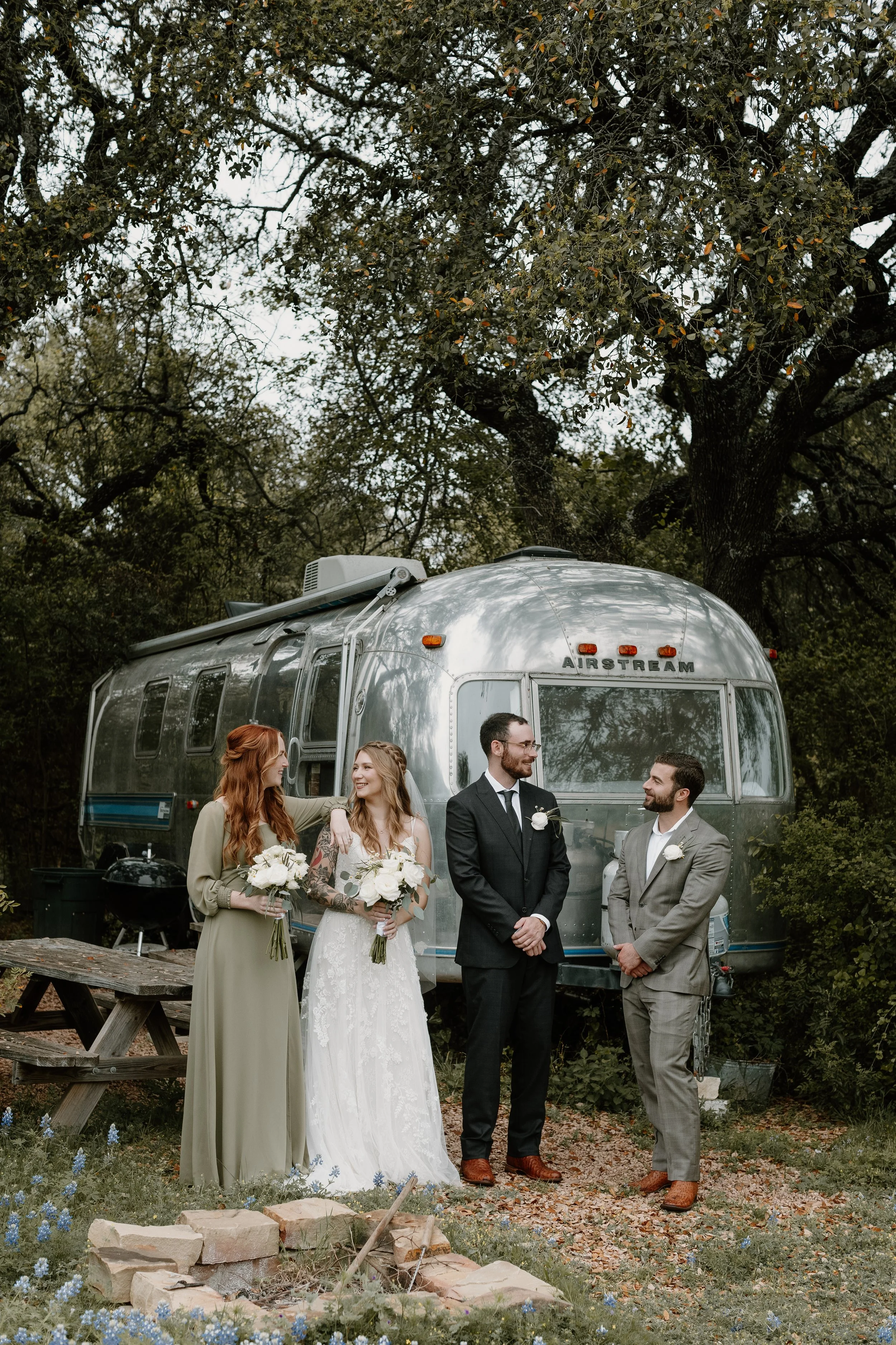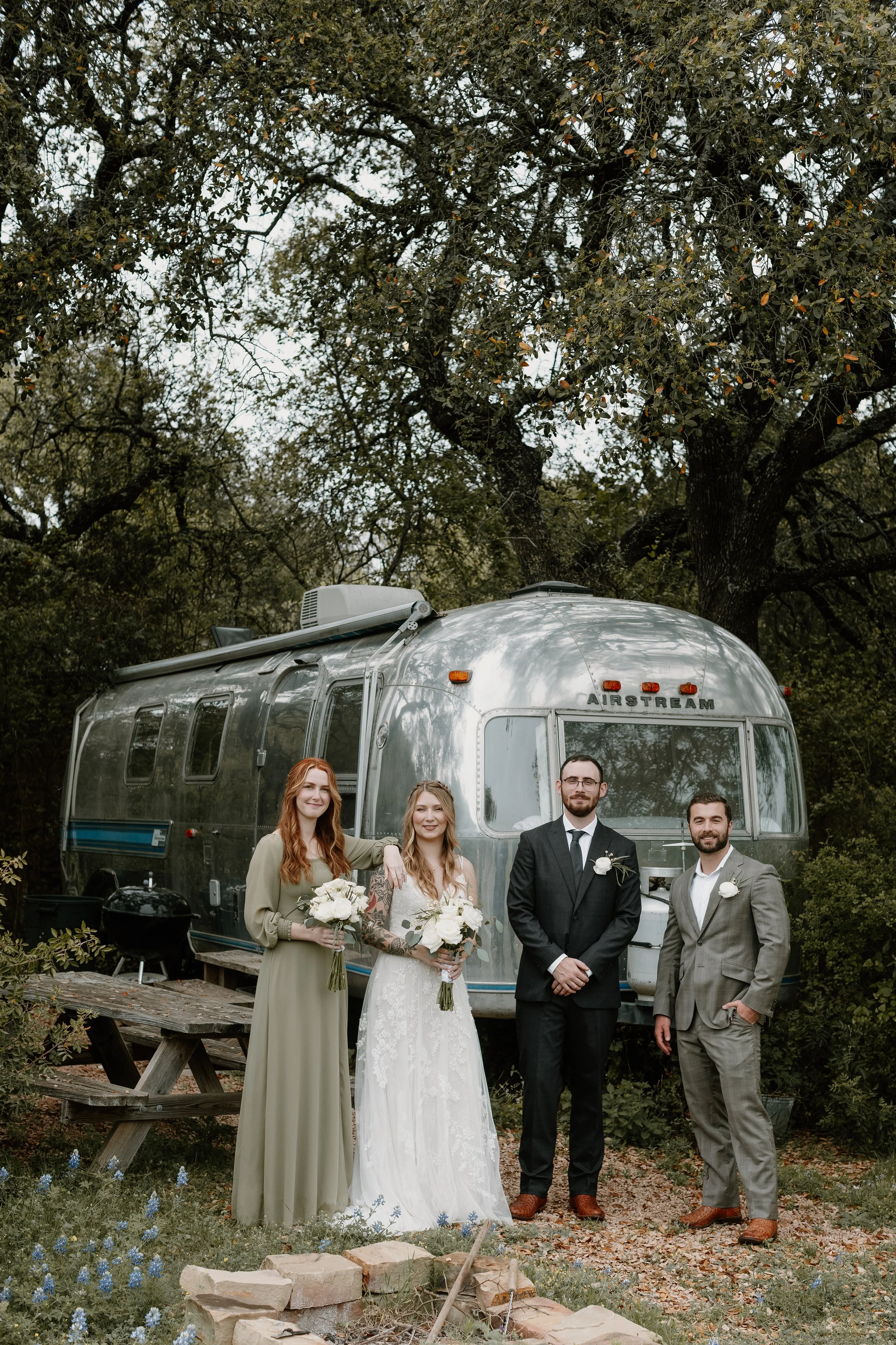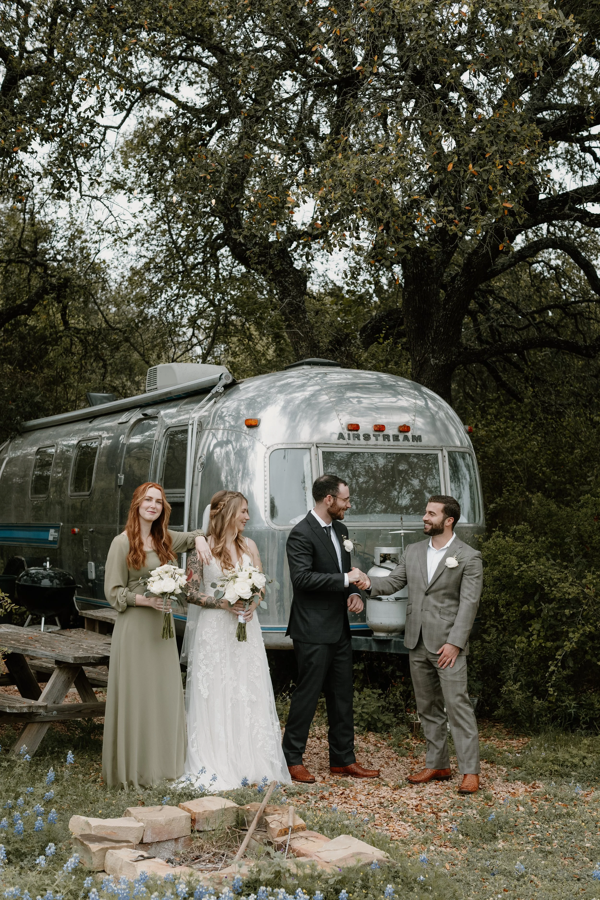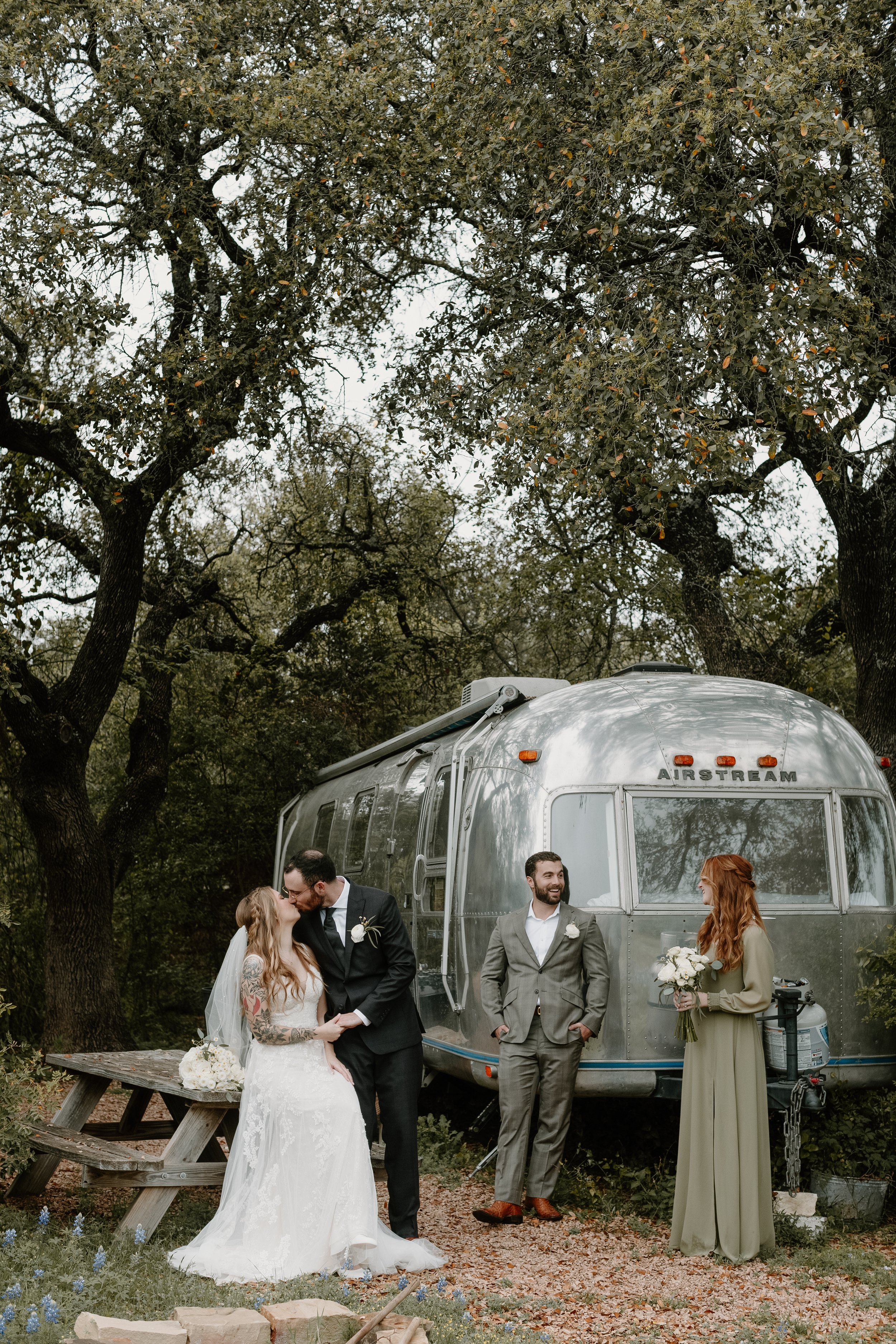 Penny and Alex tied the knot in March 2024, with their beloved dog playing a special role in the celebration. They captured heartfelt photos with their family and pup throughout the property, including some in front of the iconic Airstream trailers. Their intimate, heartfelt ceremony took place at the Pergola, followed by a lively celebration at the Hideout with their closest loved ones, dog included, of course.