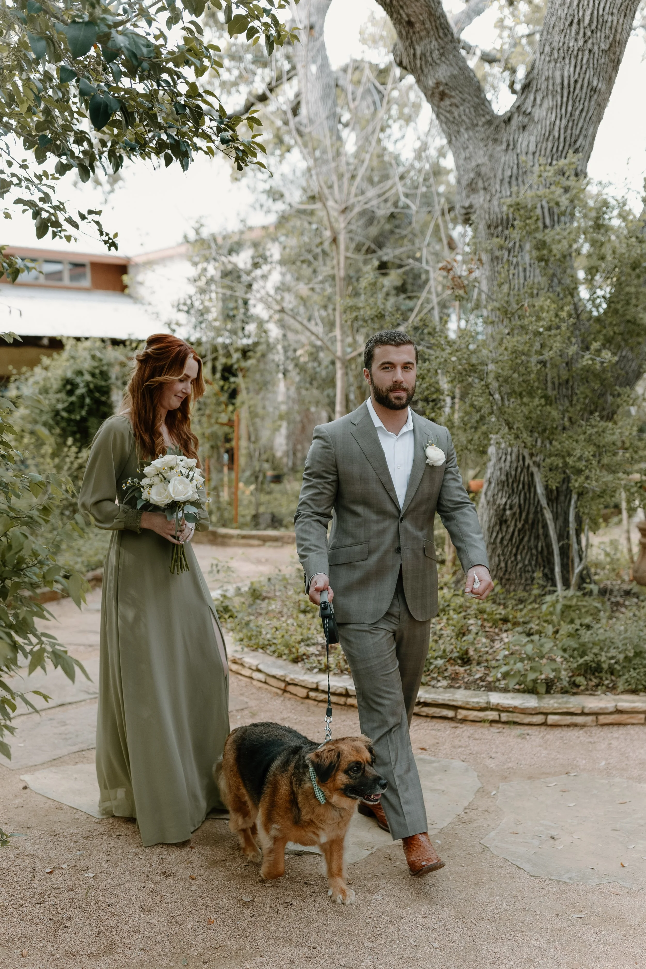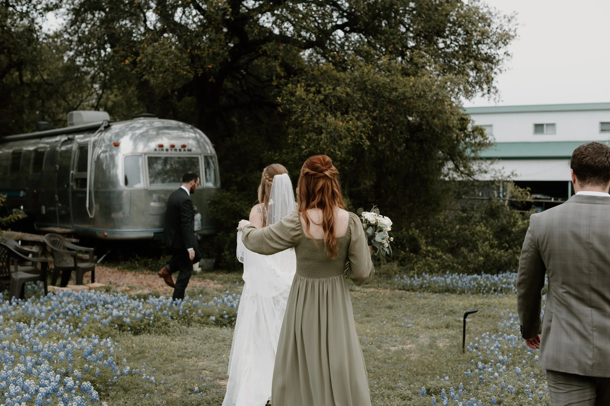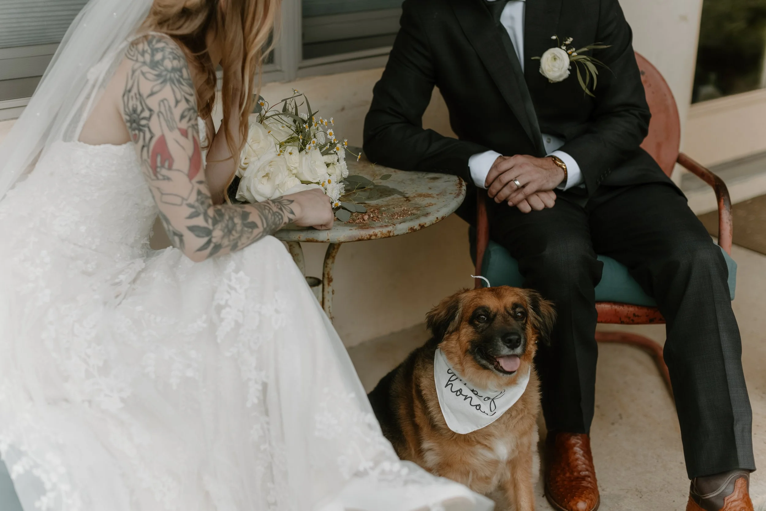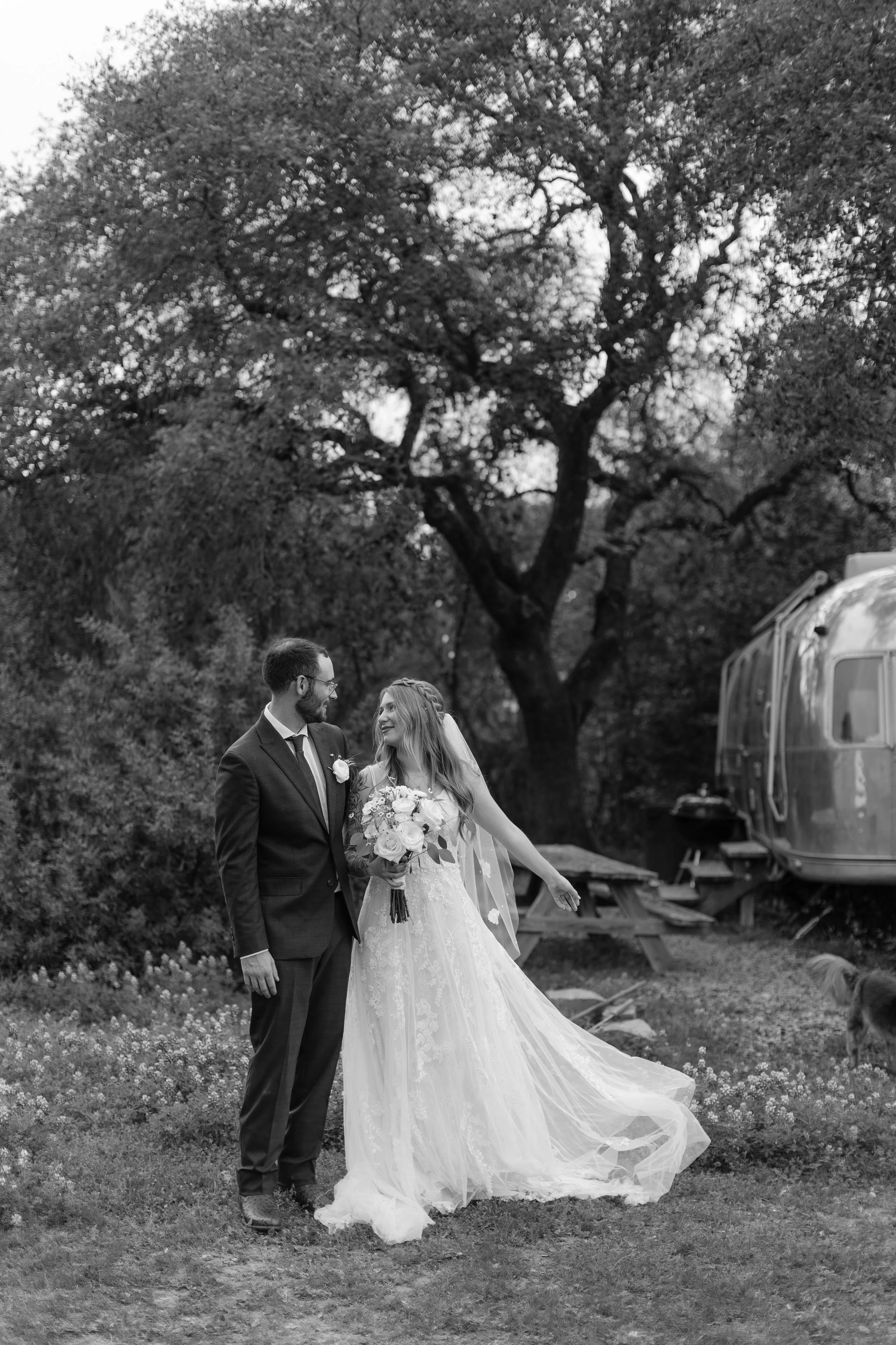 Penny and Alex tied the knot in March 2024, with their beloved dog playing a special role in the celebration. They captured heartfelt photos with their family and pup throughout the property, including some in front of the iconic Airstream trailers. Their intimate, heartfelt ceremony took place at the Pergola, followed by a lively celebration at the Hideout with their closest loved ones, dog included, of course.