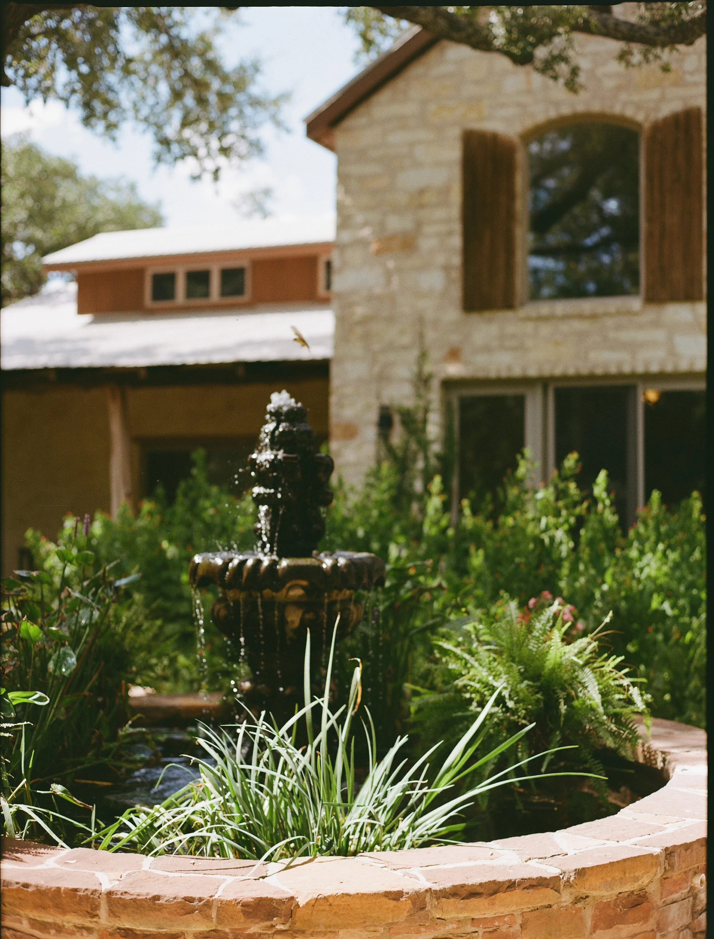 Casadecas is a stunning single-story ranch house with soaring ceilings, red cedar and limestone details, and a warm mountain-lodge feel with an authentic Austin vibe.
